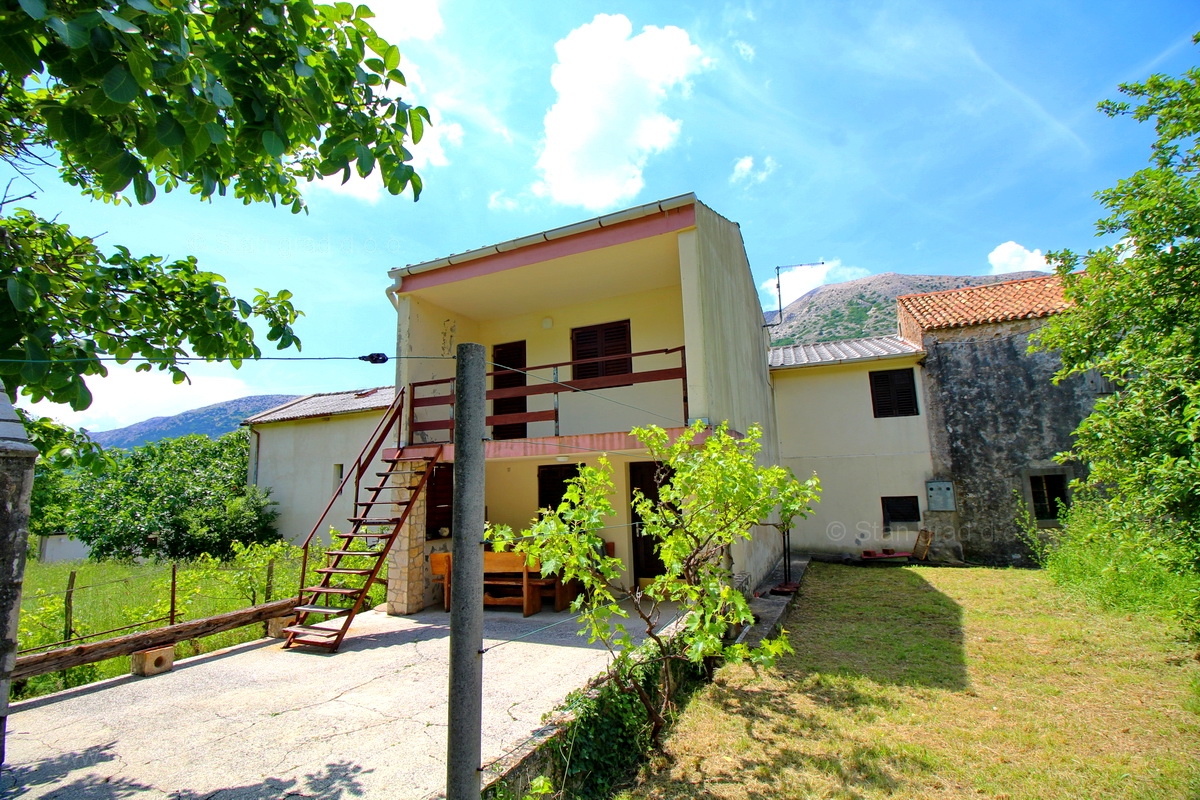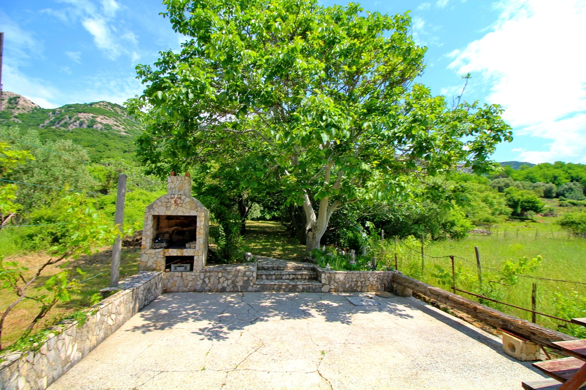 Baska, környéke, kőház egy sorban, gyönyörű kerttel