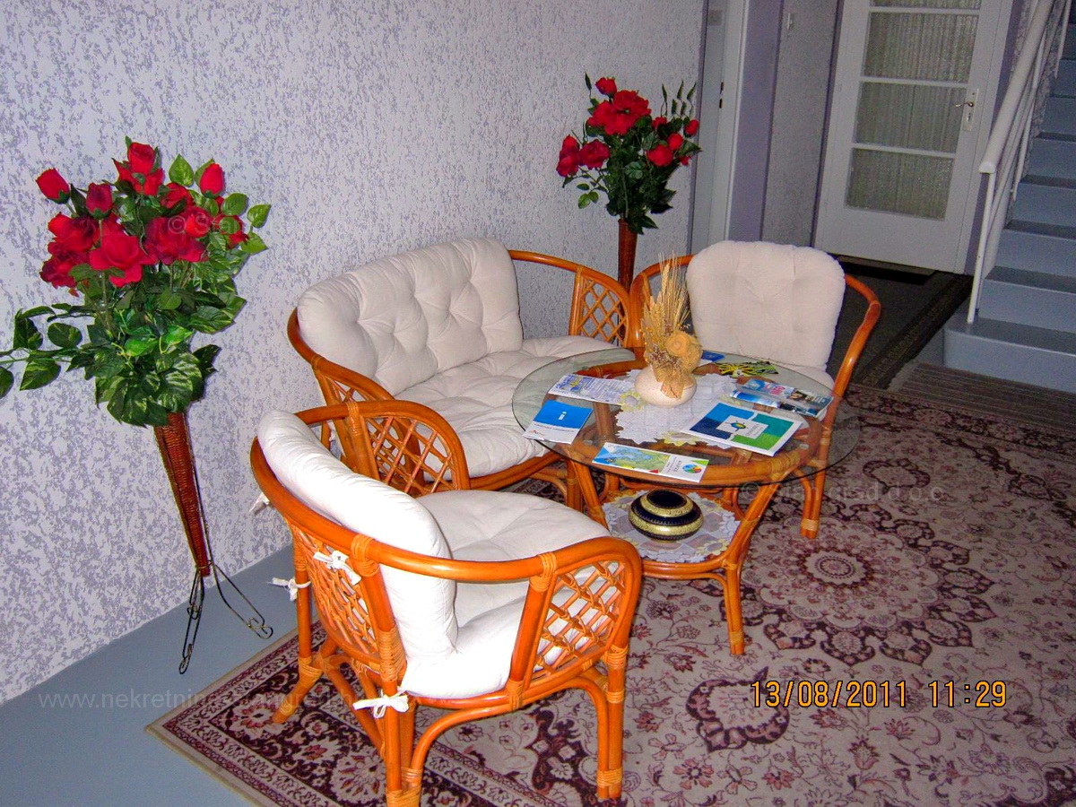 A kvarneri Stan Grad Immobilien iroda egy érdekes nyaralóházat árul a hagyományosan legkeresettebb horvát Adria területén, a Crikvenica Riviérán. A ház nagyszerű helyen található, Crikvenica tengerparti városában, közel a tengerhez. Felépítését tekintve egy kétszintes épületsorban található ház, melléképülettel és garázzsal. A ház összesen 3 emeleten tartalmaz hasznos teret. A ház három külön bejáratú lakást foglal magában. A ház alapterülete összesen 200 m2. A földszinti apartman külön-külön nappaliból és konyhából, 2 hálószobából, 1 fürdőszobából, 1 WC-ből, 1 teraszból és az első emeleten 2 apartmanból áll, amelyek egy hálószoba. Az apartmanok 3 csillagos kategóriába sorolhatók. A megőrzött belső ingatlan nagyon jó műszaki felszereltséggel és minőségi bútorokkal van felszerelve. A ház tulajdonjogához tartozik egy nagyon szépen berendezett és nemesített kert. A tárgyi ingatlan épülete és kertje több jármű parkolását teszi lehetővé a garázsban és a szabadban. A fentiekkel együtt fontos elmondani, hogy a házból jó kilátás nyílik a tengerre és a tengerpartra. Ez az ingatlan természetes személy tulajdonában van, így a tulajdonjog vevőre történő átruházásakor 3%-os ingatlan-átruházási illeték fizetési kötelezettség terheli. Az ingatlan eladója garantálja a megfelelő építési és tulajdonjogi dokumentációt és az ingatlan gyors átadását a vevő nevére. Látogasson el hozzánk Krk szigetére, és mi gondoskodunk arról, hogy minden ügyfelünk elégedett legyen. Ha minket választ, a Stan Grad Immobilien iroda örömmel segít az ingatlan tulajdonjogának átruházásában, valamint a villany-, víz- és közüzemi számlák kiegyenlítésében.