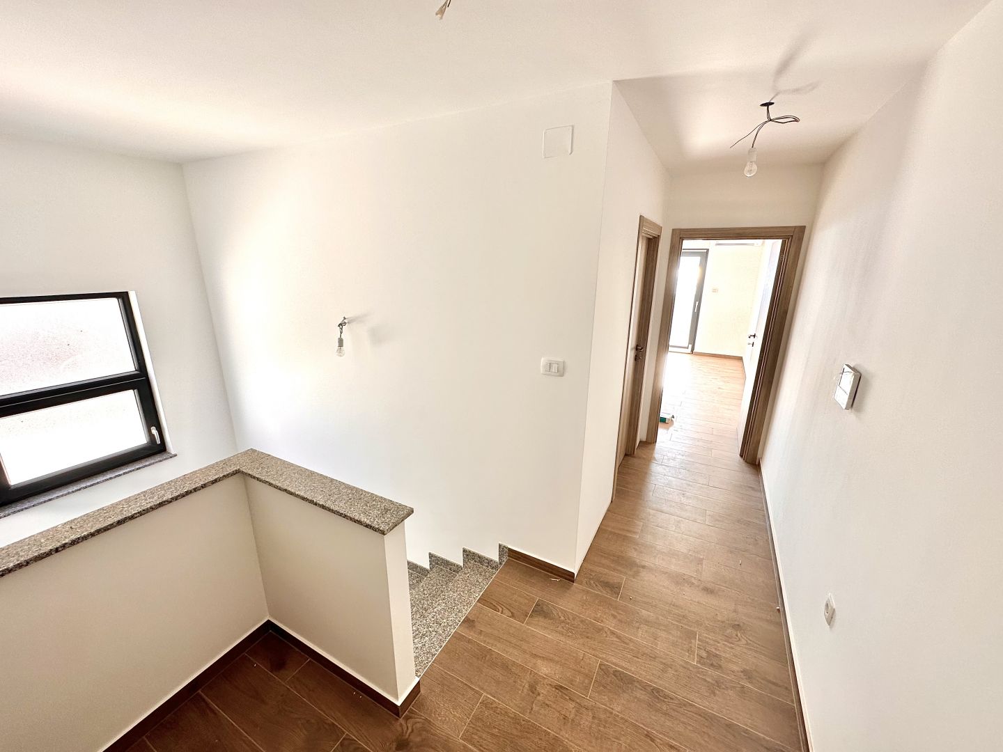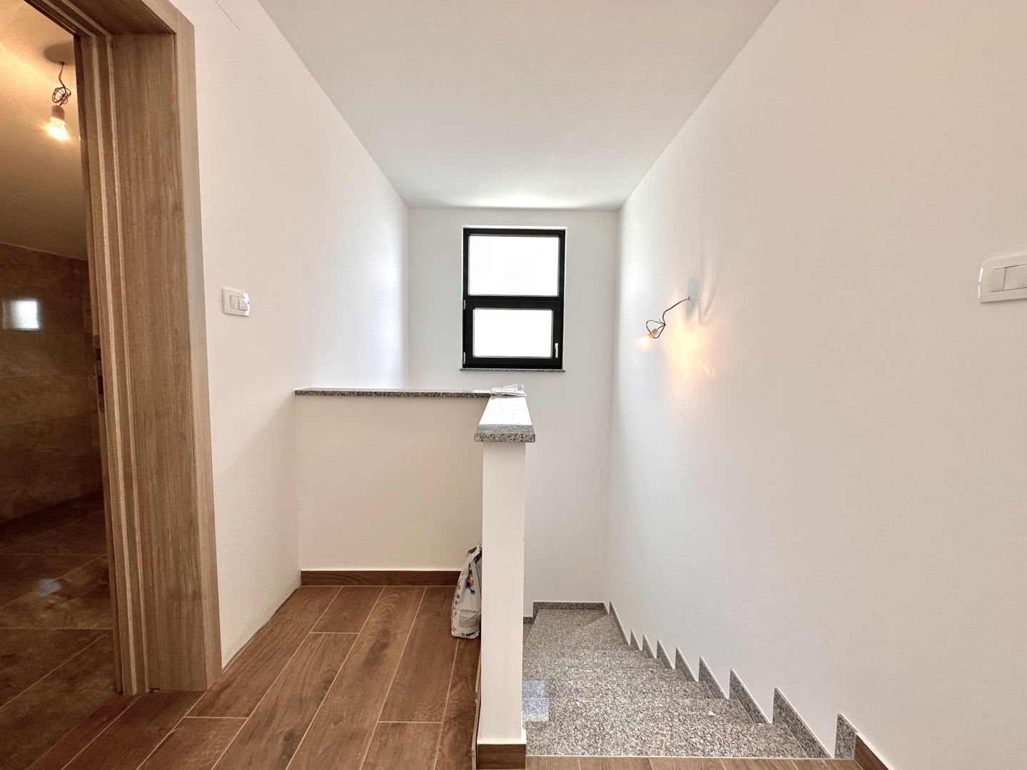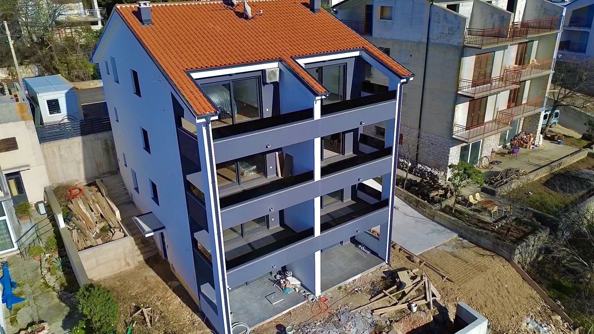 Eladó egy gyönyörű, 101 m2-es duplex apartman, tengerre néző kilátással. A lakás egy kis lakóházban található, egy zsákutca elején, 400 méterre a tengertől. Az alsó szinten található egy nappali konyhával, előszoba, gardrób, fürdőszoba, lépcsőház és egy fedett terasz, míg a második emeleten két hálószoba, egy fürdőszoba, tárolóhelyiség és egy fedett erkély található. Az első emeleti teraszról és erkélyről panorámás kilátás nyílik a tengerre. A lakáshoz tartozik egy parkolóhely. A lakások fűtéssel és hűtéssel felszereltek. Kulcsrakészen eladó. A befektető a régióban jól ismert az építési minőségéről. Alaprajzokat és anyaglistát közvetlenül az ügynöktől kérhet a +385 981377003 telefonszámon.