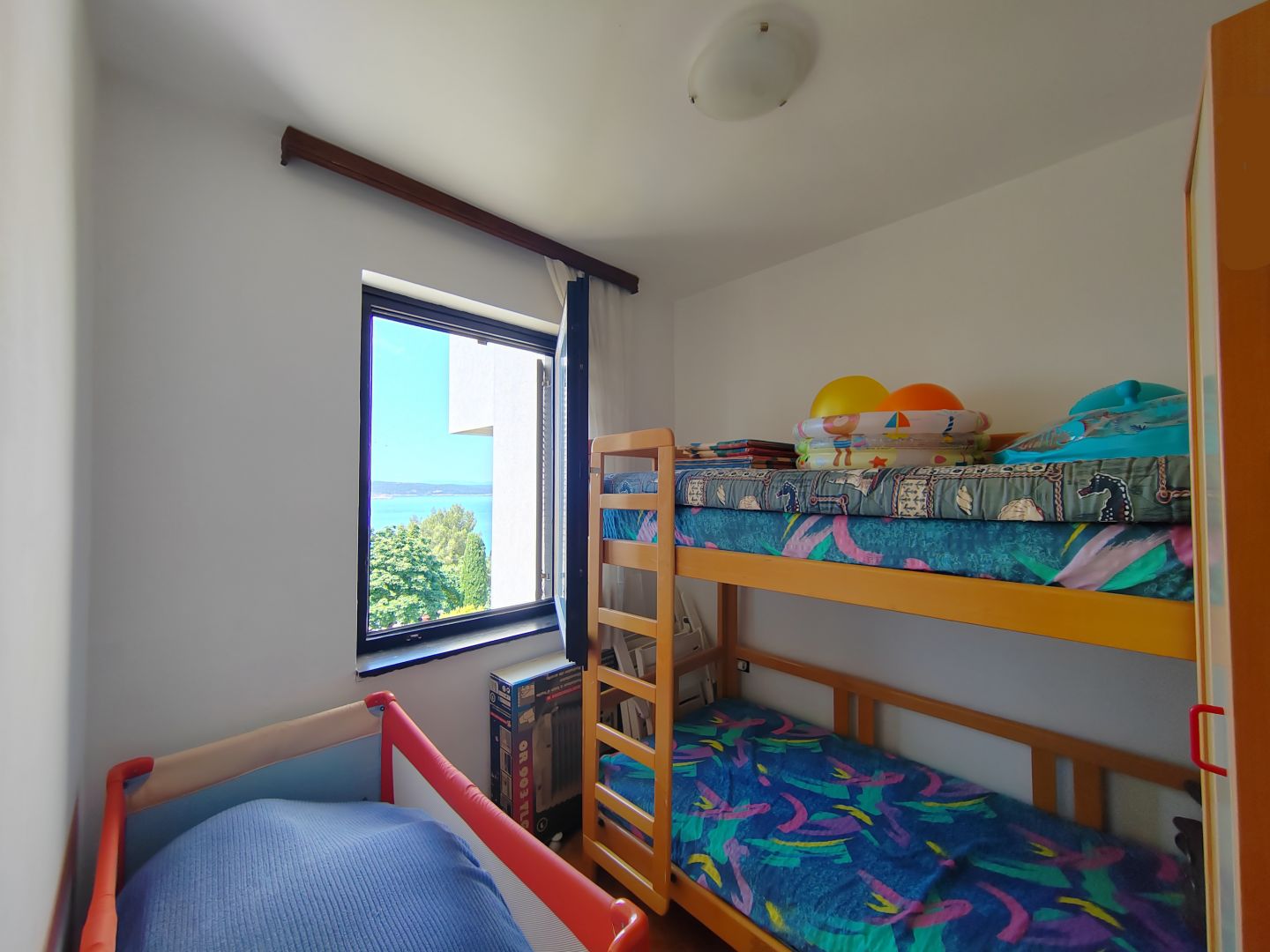 CRIKVENICA – Tágas, tengerre néző apartman, ideális lakhatásra vagy bérlésre! Crikvenica csendes részén, a Hrusta településen, kiváló helyen eladó egy teljesen berendezett, azonnal költözhető, tengerre néző apartman – tökéletes családi élethez, nyaraláshoz vagy biztonságos befektetésnek turisztikai bérbeadás céljából! A lakás egy jól karbantartott, minőségi építésű, a 80-as évekből származó épület első emeletén található, a nemrég felújított homlokzat pedig tovább hozzájárul az energiahatékonysághoz és a kellemes tartózkodáshoz egész évben. Főbb előnyök: Két erkély – az egyik gyönyörű kilátással a tengerre, a másik a tágas hálószobából (tengerre néző) közelíthető meg – ideális pihenésre vagy a szabadban tartózkodás élvezetére.