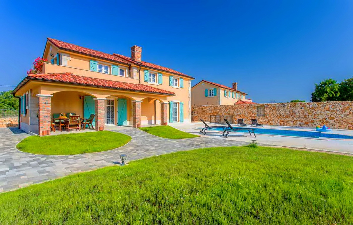 Dobrinj, környéke, új, rusztikus villa medencével, csendes helyen