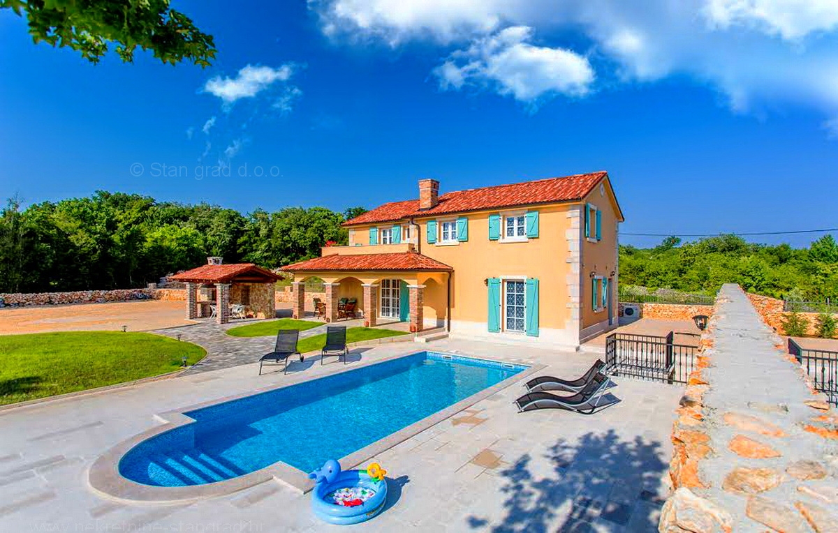 A Stan Grad Immobilien ügynökség kiváló ingatlanajánlatai közül kiemelkedik egy nagyon szép rusztikus ház a Krk szigeti régióban. Ez az érdekes tengerparti ház egy kiváló helyen található, Dobrinj település környékén, a sziget belső részén, közel minden szükséges szolgáltatáshoz. Ez a gyönyörű kőből épült villa két szinten valósult meg. A ház összesen 140 m² területet ölel fel. Az alsó szinten található a bejárati rész, nappali, konyha étkezővel, pince, WC és egy nagy fedett terasz. Az emeleten 3 hálószoba található, melyek közül az egyik teraszra nyílik, valamint 1 fürdőszoba. A ház teljesen felszerelve és bútorozva kerül értékesítésre. Az ingatlan területén egy gyönyörűen rendezett kert is található, medencével és napozóterülettel. Az ingatlan tágas kertje lehetőséget biztosít több autó kényelmes parkolására. Ezen kívül fontos megemlíteni, hogy a házból szép kilátás nyílik erre a tengerparti településre. Az ingatlan magánszemély tulajdonában van. Az eladó garantálja a tiszta tulajdonjogi dokumentációt, valamint a gyors tulajdonjog-átvitelt. A Stan Grad Immobilien ügynökség ügynökei segítenek az ingatlan megvásárlásában és a ház tulajdonjogának átruházásában.Ingatlan adatok