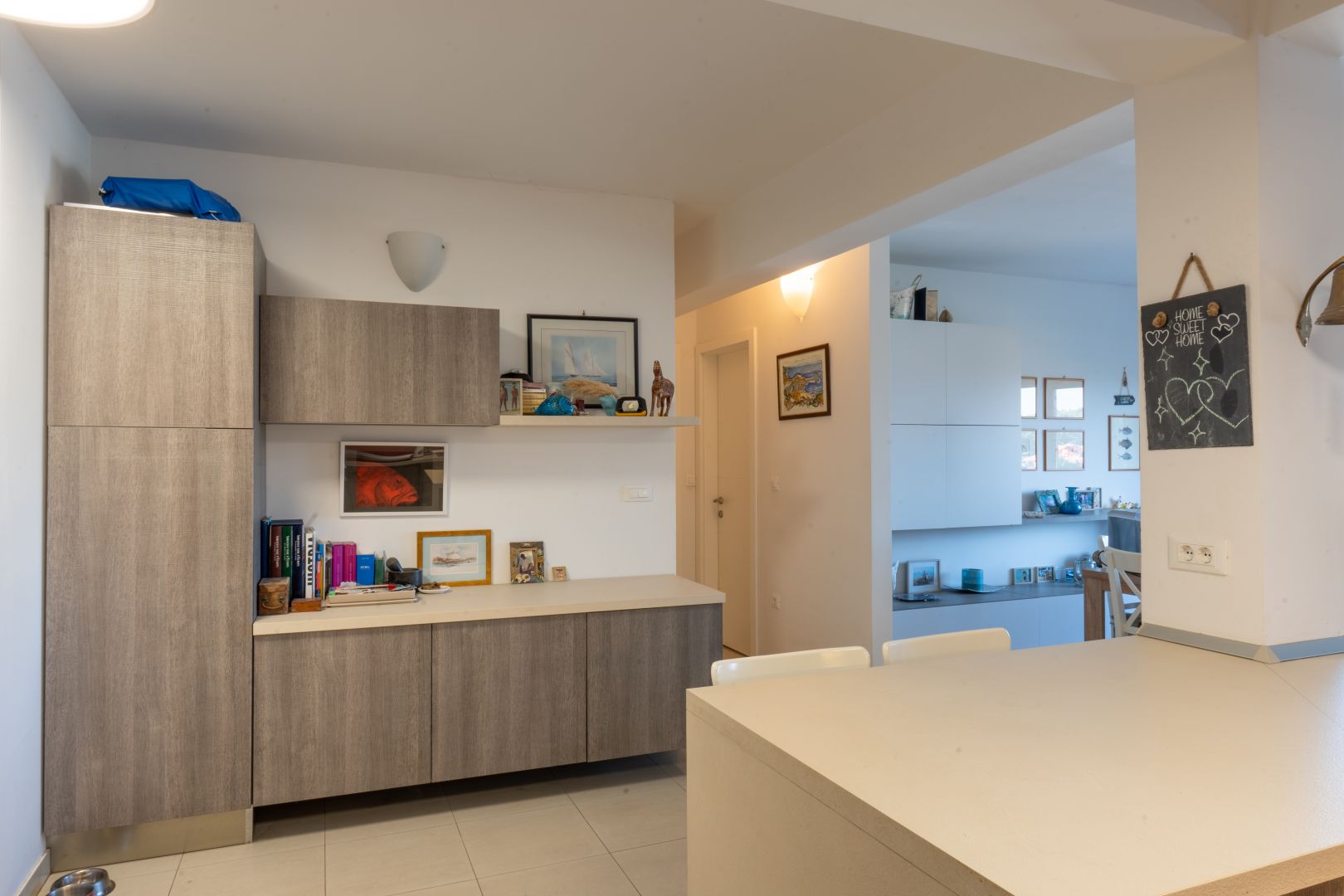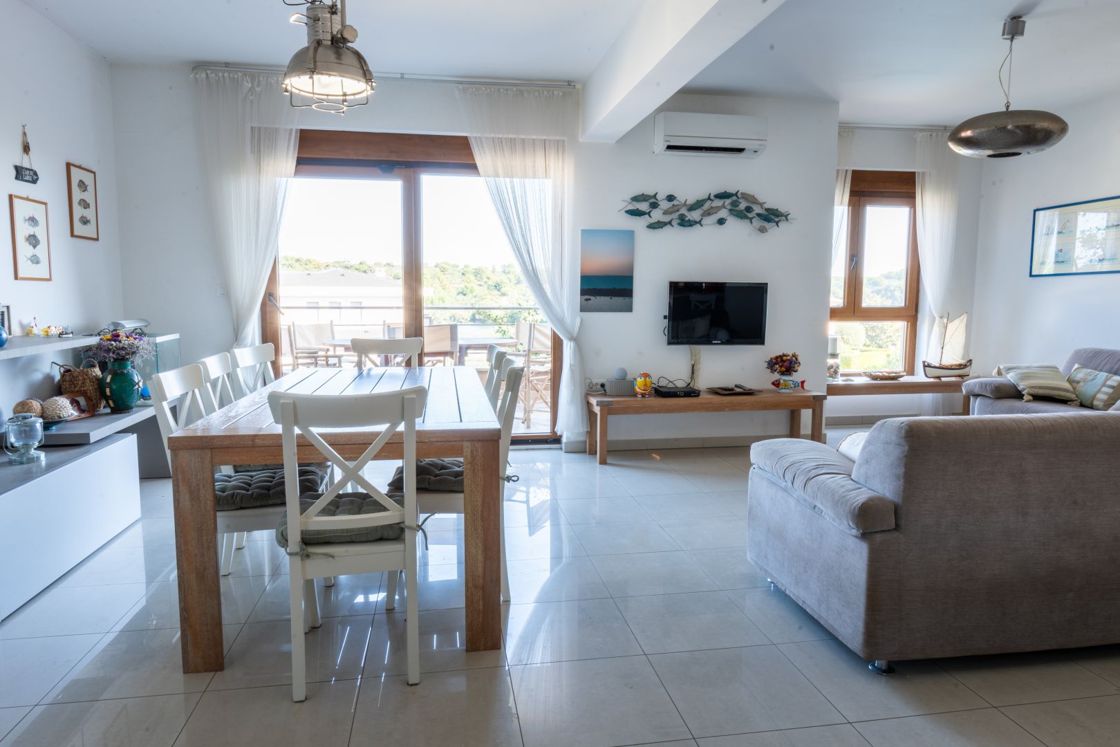 ISZTRIA, BANJOLE – Gyönyörű családi apartman terasszal és garázzsal a tenger mellett! Eladó egy gyönyörű, tágas teraszos családi lakást rendkívüli helyen, pontosabban második sorban a tengerhez! Ez egy tágas ingatlan, mely 97 m2-es lakótérrel+garázsbeállóhellyel, kültéri parkolóval és pincével rendelkezik. Az apartman egy előszobából, egy nyitott nappaliból, egy nagy, tengerre néző terasszal, egy konyhából és egy étkezőből, 3 hálószobából és két fürdőszobából áll.