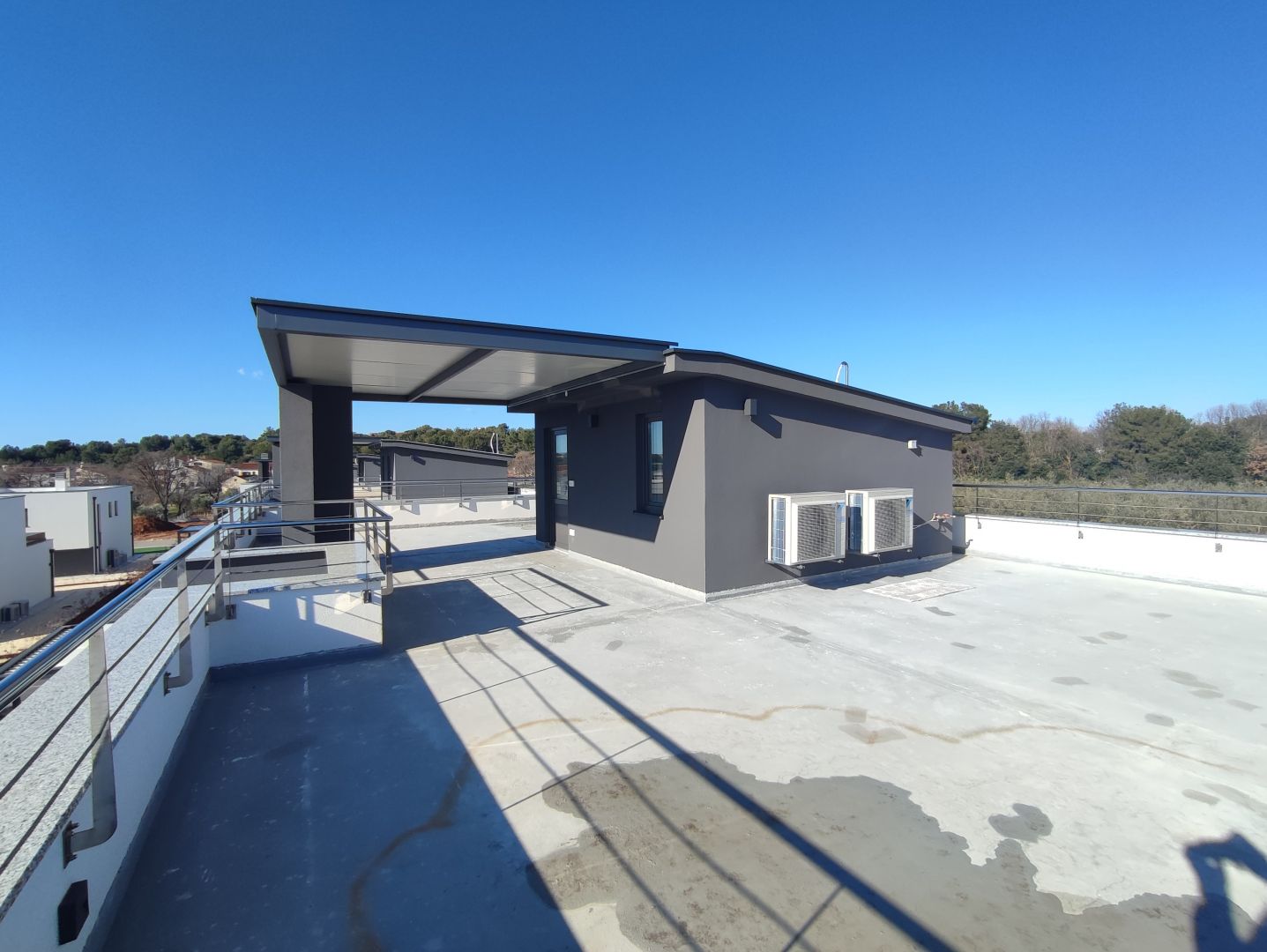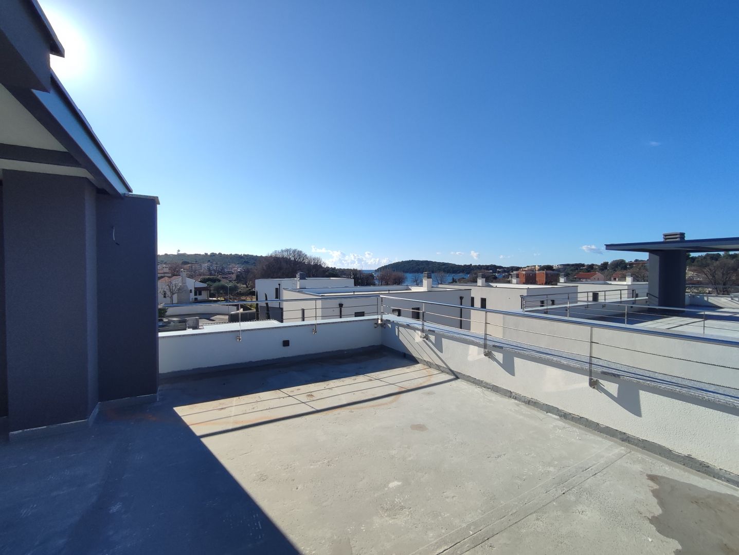 ISZTRIA, BANJOLE - Modern villa közvetlen kilátással a tengerre és a környezetre A zárt zárt körzetben található villa kellő magánéletet és mindent biztosít, ami a biztonságos és nyugodt tartózkodáshoz szükséges. A modern dizájn okos megoldásokkal és magas színvonalú kivitelezéssel kombinálva magas színvonalat állított fel, és egyedülálló élményt nyújtott a villában való tartózkodása során. A villa és modern belső terének különleges élményét a „nyílt tér” térkoncepció, a magas mennyezet és a teret nappali fénnyel megvilágító nagyobb üvegfalak érték el. A villa három emeleten terül el, így a földszinten a villa bejáratánál egy nagyobb nyitott és szellős tér fogad, amelyben a nappali étkezővel és konyhával. A nappaliból az üvegfalon keresztül a 30m2-es kültéri fedett teraszra és medencére nyílik kijárat. A földszinten található egy további tároló helyiség, egy hálószoba saját kijárattal a teraszra és egy fürdőszoba, valamint egy garázskijárat. A felső szintre egy belső lépcsőn lehet feljutni, ahol négy hálószoba található, amelyek mindegyikéből kijárat nyílik a tengerre és a környezetre néző saját teraszra. Két hálószobához saját fürdőszoba tartozik, míg a másik kettőhöz közös fürdőszoba tartozik. A hálószobák mellett van egy mosókonyha. A villa különleges részét a szép esték eltöltésére a tetőterasz adta, amely egy belső lépcsőn keresztül közelíthető meg. A tágas tetőteraszról panorámás kilátás nyílik a tengerre és a környezetre, a jacuzzihoz minden szükséges infrastruktúra kiépült. A villához tartozik még egy automata ajtós garázs, 2 autónak bőséges parkolóhellyel és saját WC-vel. Az 500m2-es telken két gépkocsi beálló, uszoda stranddal és elegendő zölddel, melyről automata öntözőrendszer gondoskodik. További információ: * A villa schüco alumínium asztalos szerkezettel van felszerelve, automata redőnnyel és minden ablakon és ajtón szúnyogháló van felszerelve * Padlófűtés minden helyiségben * Fűtés-hűtés rendszer fenkoilerrel * 10 cm-es homlokzati szigetelés Ez ideális lehetőséget a biztonságos és nyugodt életre, vagy befektetési lehetőségként turisztikai céllal.Ingatlan adatok