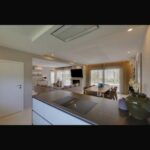 ISZTRIA, BANJOLE - Modern villa közvetlen kilátással a tengerre és a környezetre A zárt zárt körzetben található villa kellő magánéletet és mindent biztosít, ami a biztonságos és nyugodt tartózkodáshoz szükséges. A modern dizájn okos megoldásokkal és magas színvonalú kivitelezéssel kombinálva magas színvonalat állított fel, és egyedülálló élményt nyújtott a villában való tartózkodása során. A villa és modern belső terének különleges élményét a „nyílt tér” térkoncepció, a magas mennyezet és a teret nappali fénnyel megvilágító nagyobb üvegfalak érték el. A villa három emeleten terül el, így a földszinten a villa bejáratánál egy nagyobb nyitott és szellős tér fogad, amelyben a nappali étkezővel és konyhával.