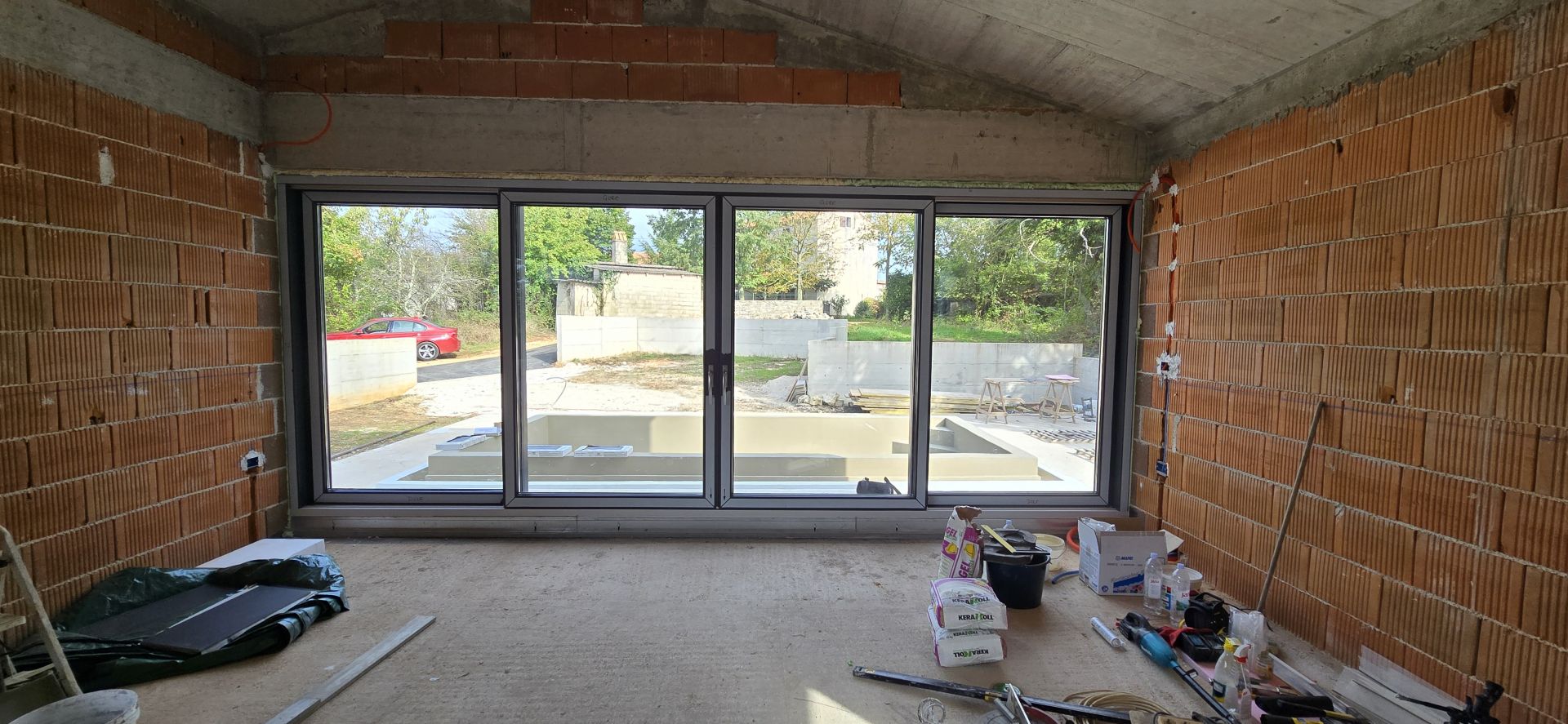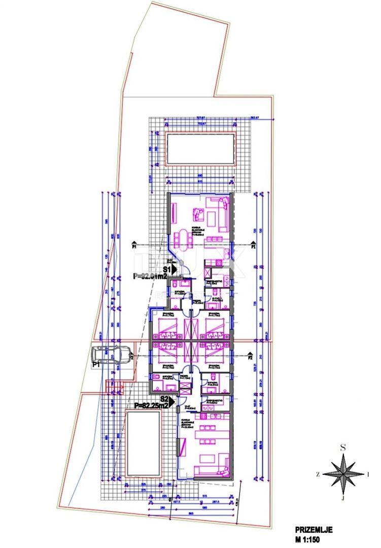 ISZTRIA, BARBAN - Ikerház villa medencével a falu végén Barban egy kis festői, középkori akropolisz jellegű település Kelet-Isztria déli részén, a Rasa folyó völgye fölött. A barokk és gótikus korszakból jól megőrzött építészeti épületek, freskók és glagolita feliratok, templomok, paloták és városfalak, a Ring Race lovagi játéka, a hagyományos borfesztivál és a fügefesztivál teszik Barbant rendkívül vonzóvá. Barban település, amely a Raško-öbölben hozzáfér a tengerhez, 100 km2-es területet foglal el. Barbanon kívül 31 másik település található Barbanština gyönyörű zöldjében. Az egyik településen ennek a gyönyörű duplexnek az építése folyik. A duplex egyszintes épület, mely 92 m2-es kényelmes lakótérrel várja leendő tulajdonosait. A villa szobái tökéletesen össze vannak kötve, és úgy vannak kialakítva, hogy az itt-tartózkodást a lehető legkellemesebbé tegyék, és minden szoba a lehető legjobban betöltse a szerepét. A villa bejáratánál található a "nyílt tér" rendszer szerint kialakított nappali. A nappaliban található egy kényelmes nappali, amely ideális a pihenésre egy aktív nap után. A nappalin kívül az egész család számára elegendő étkező és egy gyönyörű konyha is található. Amit ki kell emelnünk, hogy a nappaliból és az étkezőből egy privát nyári terasz nyílik medencével. A tér folytatásában két kényelmes hálószoba található, melyek közül az egyik saját fürdőszobával rendelkezik. A második fürdőszoba a folyosón található, és a háztartás összes tagja közösen használja. Mellette van egy mosókonyha, ami egyben kazánház is. Mint említettük, a nappaliból egy szép, 485 m2-es kerthelyiségbe jutunk ki, ahol egy 3,5x6,6 méteres túlfolyó medence található. A medence fűtött, ami lehetővé teszi a használatát a hideg téli napokon, így lehetőség nyílik a turisztikai szezon meghosszabbítására azok számára, akik turisztikai bérlést terveznek. A kert el van rejtve, és mindent tartalmaz, ami egy teljes szabadtéri bulihoz kell. Bádog kedvencei számára 3 parkolóhely biztosított. A villa fűtését padlófűtés biztosítja hőszivattyúval és klímaberendezésekkel. A szennyvíz elvezetésére a városi szennyvízhálózat szolgál. Az építkezés befejezését 2025 júniusára tervezik. A villa bútorok és szaniterek nélkül eladó. Ez az érdekes villa ideális családi élethez vagy turizmushoz. Az ügynökségi jutalék az Általános Szerződési Feltételek szerint kerül felszámításra:Ingatlan adatok