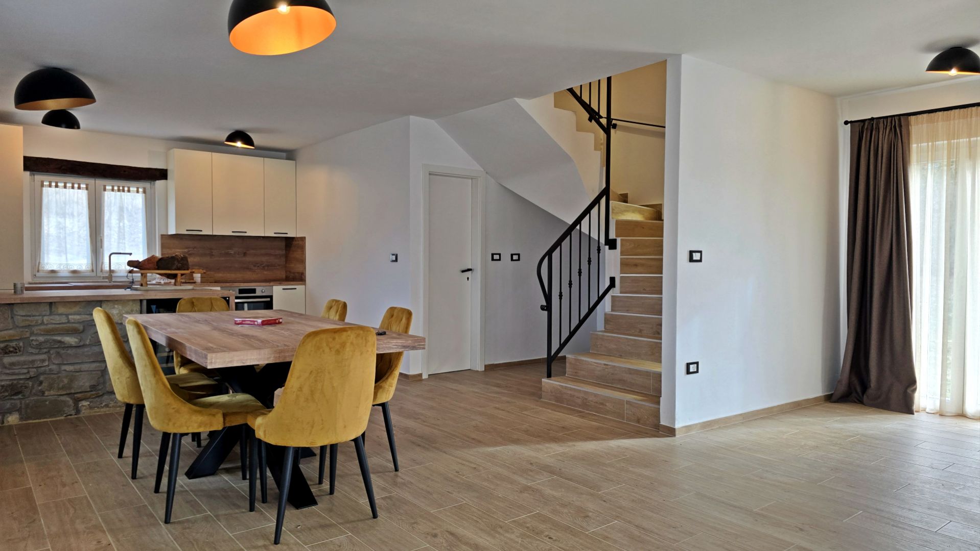 ISZTRIA, CEROVLJE – Ház úszómedencével és két építési telekkel Cerovlje az azonos nevű tágas község központi települése, amely Pazintól északkeletre húzódik végig a dombos tájon, és számos falut és több nagyobb vidéki települést foglal magában, 107 km²-en. Ez a település ad otthont Isztria leghosszabb barlangjának, a tengerszint feletti legmagasabb olajfaligetnek és két kastélynak. A Pazinčica folyó folyik át, a folyó völgyében pedig egy vasút, majd egy út, végül egy autópálya. Ezen a mesebeli kilátású tájon eladó egy ház medencével és két építési telekkel.