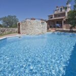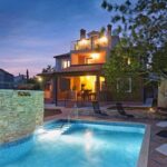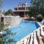 ISZTRIA, JURŠIĆI - Családi kővilla csendes helyen található, csodálatos kilátással az Isztriai-félsziget zöldjére és dombos tájára. Csupán 15 percnyi autóútra a tengertől és az első strandoktól, csodálatos helyen, érintetlen természettel körülvéve, 600 m-es telken épült fel ez a 240 m2 összterületű gyönyörű ház. A földszinten található egy konyha étkezővel és egy nappali, valamint egy hálószoba fürdőszobával és külön WC-vel. A nappaliban van egy nagy erkélyajtó, kilátással és kijárattal a medencére és egy fedett teraszra grillezővel. Az első emeleten három hálószoba található, mindegyik saját fürdőszobával. Az egyik hálószobához terasz tartozik, kilátással a zöld területekre. A tetőtérben van egy másik hálószoba fürdőszobával, valamint egy terasz, ahonnan tiszta napokon gyönyörű kilátás nyílik a távoli tengerre. Minden szoba légkondicionált. A nappaliban padlófűtés, a szobákban radiátorok kerültek beépítésre. Csak pellet kályhát kell vásárolni. Van még egy fedett parkoló az autóknak és egy hely a kerékpároknak, amit le lehet zárni. A medence területe 58 m2, sajátos formával és isztriai kažunnal, ami különlegessé teszi. A medence körül napozóterület található. A projekt szerint az új tulajdonosnak lehetősége van egy 12m2-es mosókonyha építésére. Az ingatlan teljesen be van kerítve, és magánéletet biztosít. Az ingatlan minden szükséges dokumentációval rendelkezik. Tulajdon 1/1, tehermentes. Ha csendes helyen keres házat, ez a szépség a megfelelő választás az Ön számára. Ugyanakkor kiváló befektetés a turizmusban. Ne hagyja ki ezt a lehetőséget! Az ügynökségi jutalék az Általános Szerződési Feltételek szerint kerül felszámításra.Ingatlan adatok