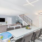 Svetvinčenat reneszánsz városa Isztria egyik gyöngyszeme, gazdag turisztikai kínálatával és számos rendezvényével, amelyek a város kivételesen vonzó történelmi tereiben zajlanak. Savičentát a Placa nevű reneszánsz tér ékesíti a Morosini-Grimani kastélyával – magának a városnak a szimbóluma, és az akkori velencei hadsereg egyik legfontosabb erődítménye Isztria területén. Évről évre számtalan látogatót vonz ez a különleges, igen gazdag hagyományokkal rendelkező település, érdekes és változatos programjaival, melyek közül a legkiemelkedőbbek a Középkori Fesztivál, a Sajtfesztivál, valamint a Tánc- és Nonverbális Színházi Fesztivál. Egy csendes faluban, Svetvincenat közelében található ez a gyönyörű családi ház nettó 243 m2 alapterülettel. A ház két szintes. A földszinten nappali, étkező, konyha és medencekapcsolat található, míg az emeleten hálószobák találhatók, mindegyikhez saját fürdőszoba WC-vel és egy nagy terasz. A ház előtt 40 m2-es medence (4×10 m) és jacuzzi található. A házhoz 1000 m2-es kert is tartozik! Ez a ház tökéletes lehetőséget kínál a városi élet stresszéből való kikapcsolódásra mediterrán éghajlaton, vagy pénzügyi befektetésként idegenforgalmi bérbeadásra.
