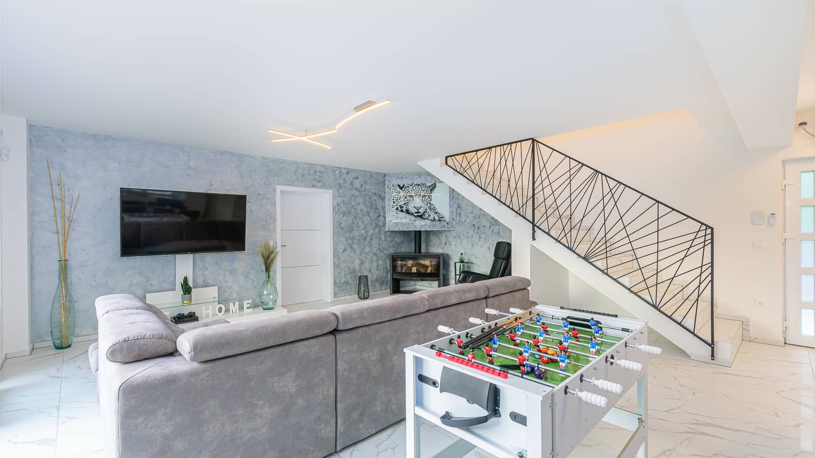 ISZTRIA, JURŠIĆI – Minőségi új épület Juršićiban Svetvinčenat reneszánsz városa Isztria egyik gyöngyszeme, gazdag turisztikai kínálatával és számos rendezvényével, amelyek a város kivételesen vonzó történelmi tereiben zajlanak. Savičentát a Placa nevű reneszánsz tér ékesíti a Morosini-Grimani kastélyával – magának a városnak a szimbóluma, és az akkori velencei hadsereg egyik legfontosabb erődítménye Isztria területén. Évről évre számtalan látogatót vonz ez a különleges, igen gazdag hagyományokkal rendelkező település, érdekes és változatos programjaival, melyek közül a legkiemelkedőbbek a Középkori Fesztivál, a Sajtfesztivál, valamint a Tánc- és Nonverbális Színházi Fesztivál. Egy csendes faluban, Svetvincenat közelében található ez a gyönyörű családi ház nettó 243 m2 alapterülettel.