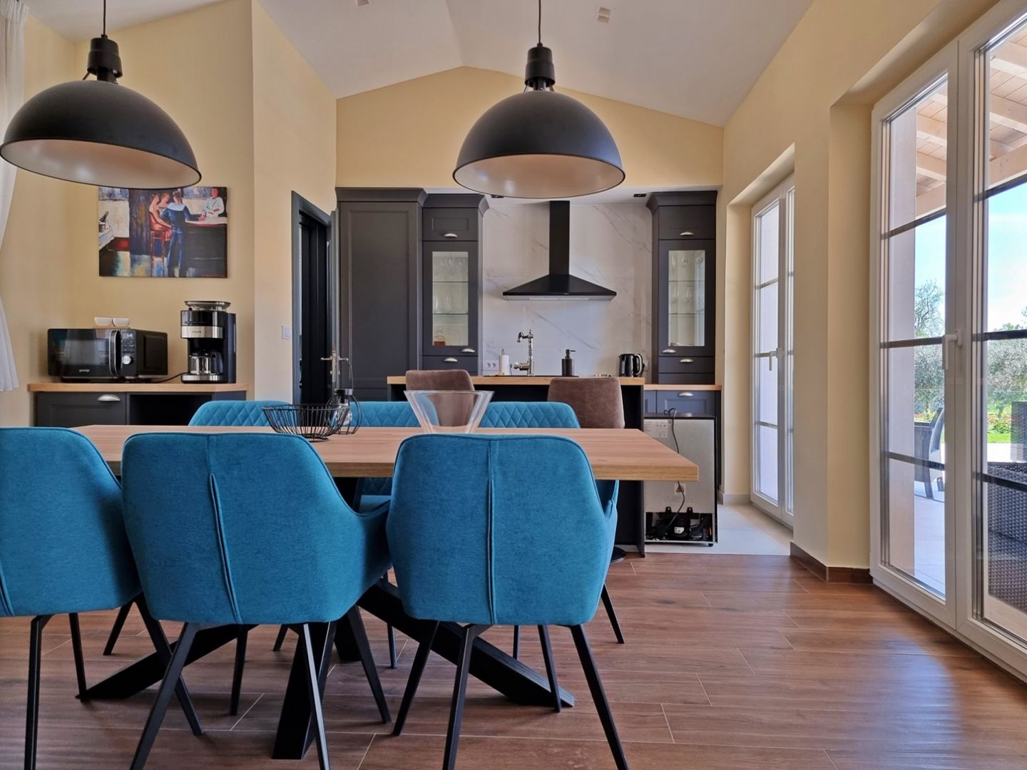 ISZTRIA, KANFANAR – Tágas ház úszómedencével Kanfanarban megtalálja azt a békét, amely az isztriai hátország kis falvaira jellemző, bár minden kéznél van. Egy kis hely, ahol az enyhe mediterrán éghajlat és a belső Isztria természeti adottságai ötvöződnek, 15 percnyi autóútra Rovinjtól. Kanfanar települése számos látnivalóról híres. A Lim-csatorna gyönyörű zöld-kék oázisától a középkori Dvigrad város romjaiig, számos régészeti lelőhelyig, gazdag szakrális örökségig, helyi termékekig.