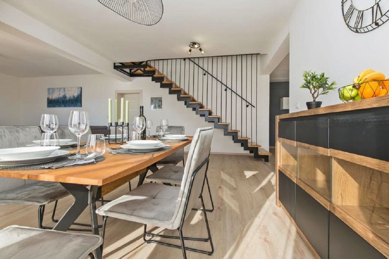 A vidéket meghatározó gazdag történelemmel és bányászattal összefonódó Labin, amelyet rövid időre független köztársasággá nyilvánítottak, ma az ellentmondások lenyűgöző városa; régi és új, történelem és jelen, turizmus és művészet. Labin város környékén modern, panorámás új épület eladó. A minőségi építésű ház a földszinten és az emeleten is átnyúlik. A földszinten egy nyitott elrendezésű nappali, étkező és konyha található, fedett terasz kijárattal, wc, tároló és mosókonyha. Az emeleten három hálószoba saját fürdőszobával és két terasz található. A ház fűtésére/hűtésére minden helyiségben klíma inverterek, padlófűtés és fa vagy pellet kandalló beépítésének lehetősége van a ház nappalijában. Teljesen bútorozott és felszerelt, így eladó. Az udvar teljesen bekerített és parkosított, úszómedencével, napozórésszel és parkolókkal rendelkezik. Ez a modern, új építésű ház egy csendes faluban, panorámás vidékre, ideális ingatlan családi életre, vagy befektetésnek, idegenforgalmi célú bérbeadásra.