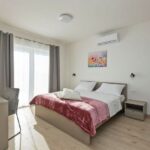ISZTRIA, LABIN – Modern, panorámás új épület Isztria délkeleti partján, ahol a zöldellő dombok találkoznak a tengerrel, ahol a természet és az örökség találkozik, két hasonló méretű, de eltérő, de egymást kiegészítő karakterű város található – Labin és Rabac. Labin festői városa egy 320 m magas dombon emelkedik, mindössze öt kilométerre Rabac fehér kavicsos strandjaitól.