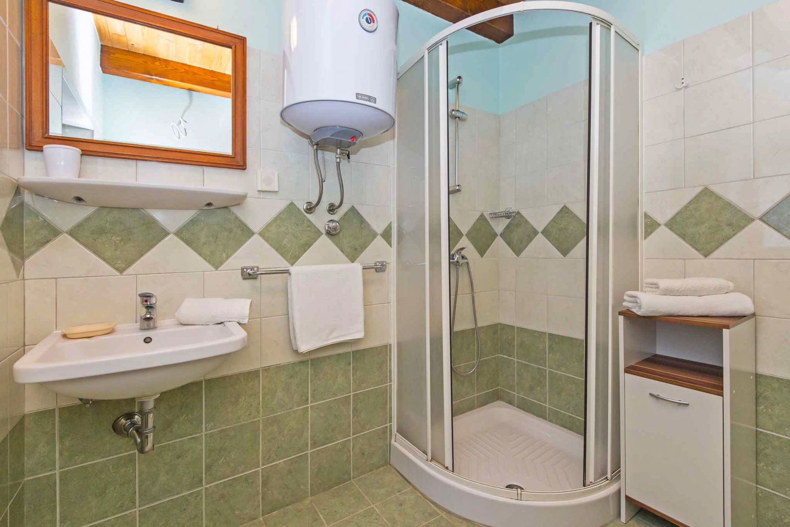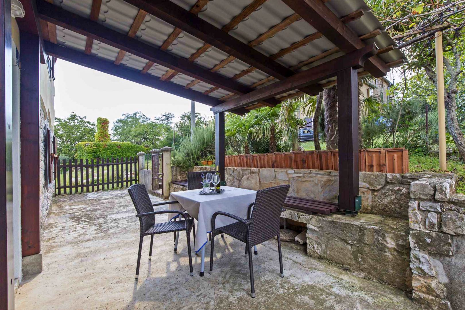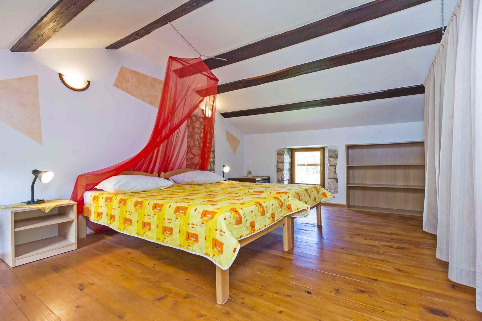 A kőház egy földszintből és egy emeletből áll. A földszinten nappali, étkező, konyha és fürdőszoba, az emeleten pedig két tágas hálószoba található.