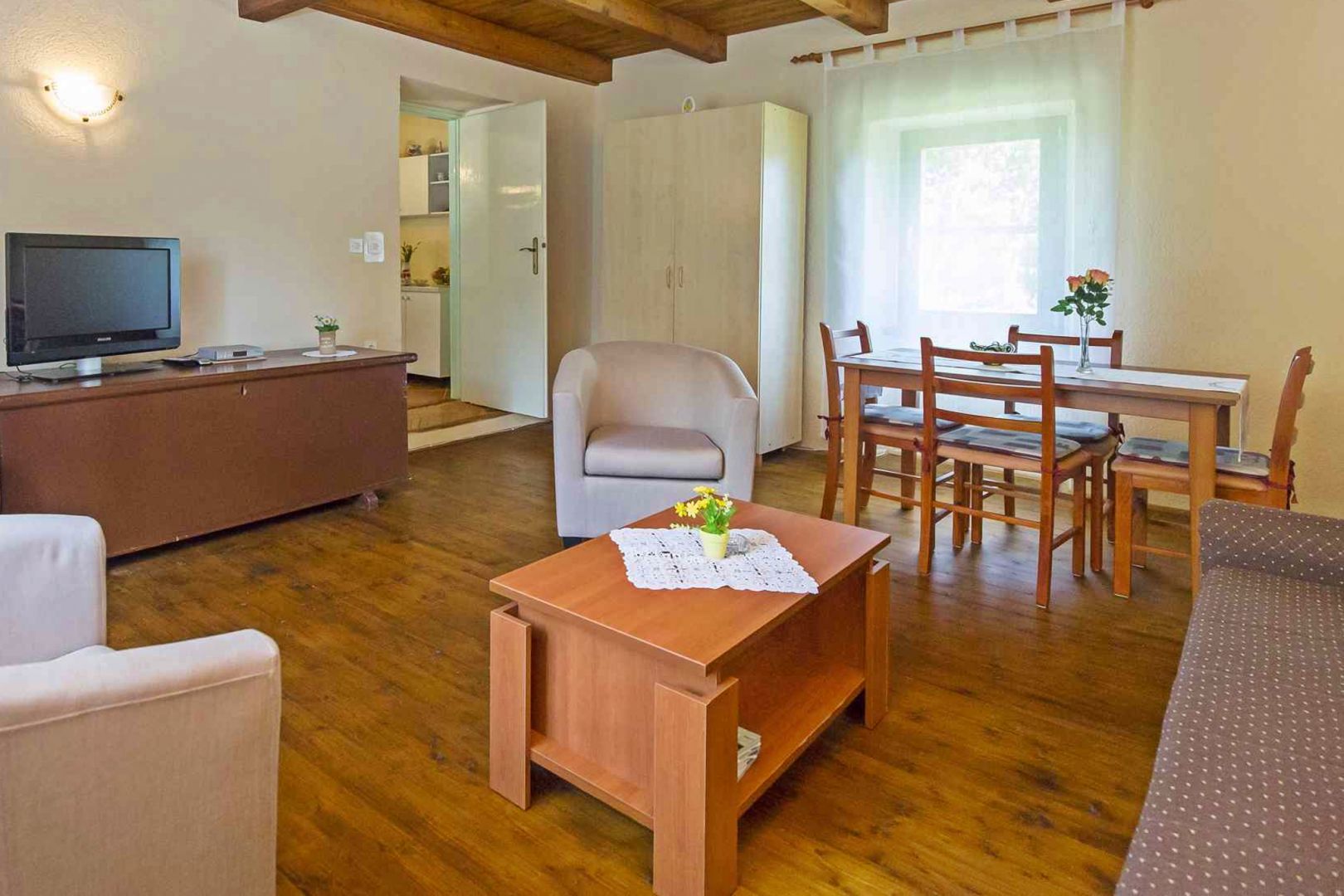 A falu szélén található ingatlan kiválóan alkalmas nyugodt családi életre, de befektetésnek is kiváló, bejáratott turisztikai bérbeadás céljából.