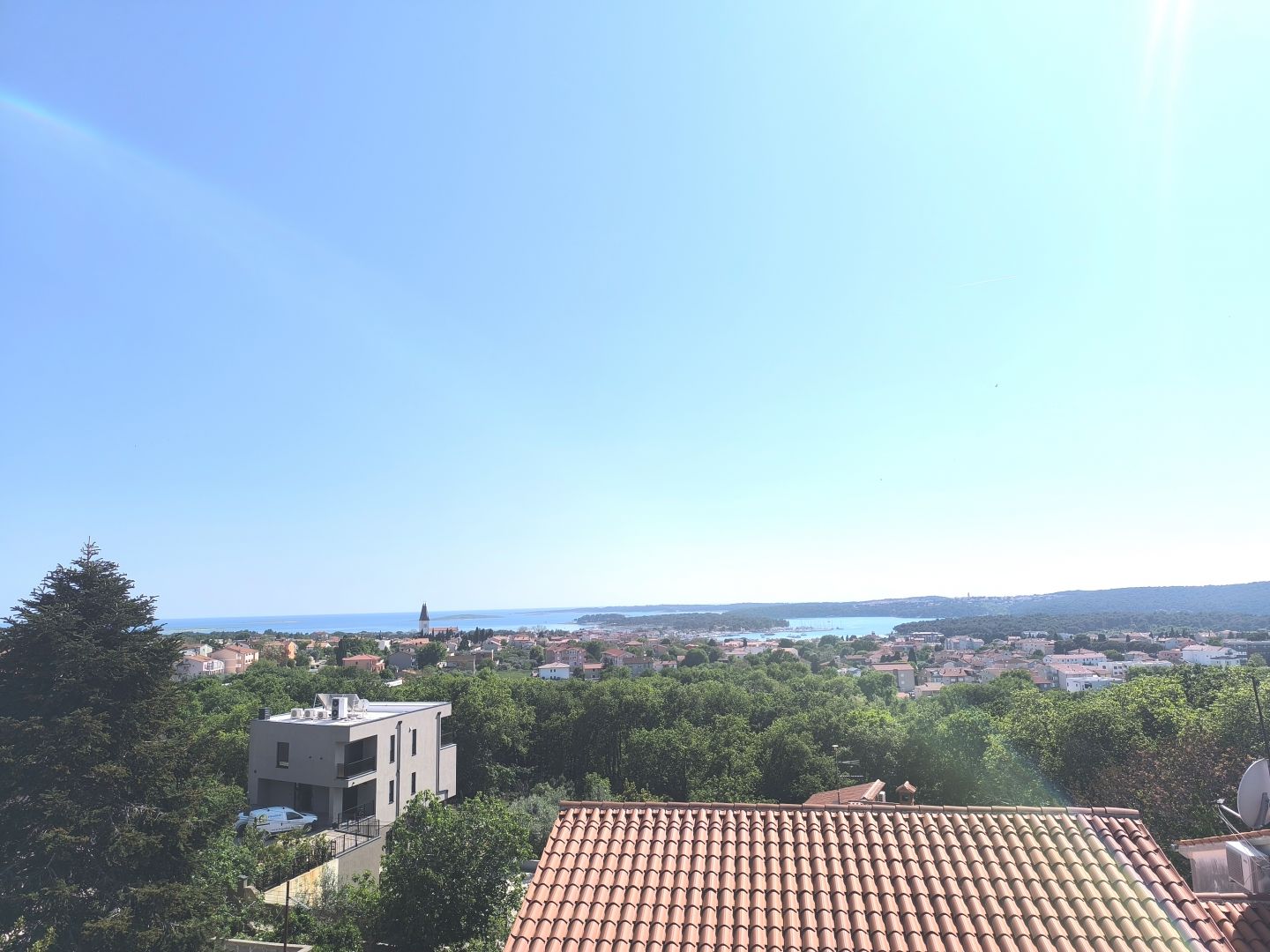 ISTRIA, MEDULIN - Duplex apartman panorámás tengerre néző kilátással Eladó duplex apartman panorámás tengerre néző kilátással. Az apartman egy lakóépületben található, 80 méterrel a tengerszint felett, és széles, akadálytalan kilátás nyílik a Medulin-öbölre. A lakás két szintre oszlik, ahol két lakás található elosztva. Az egyik apartman az 1.