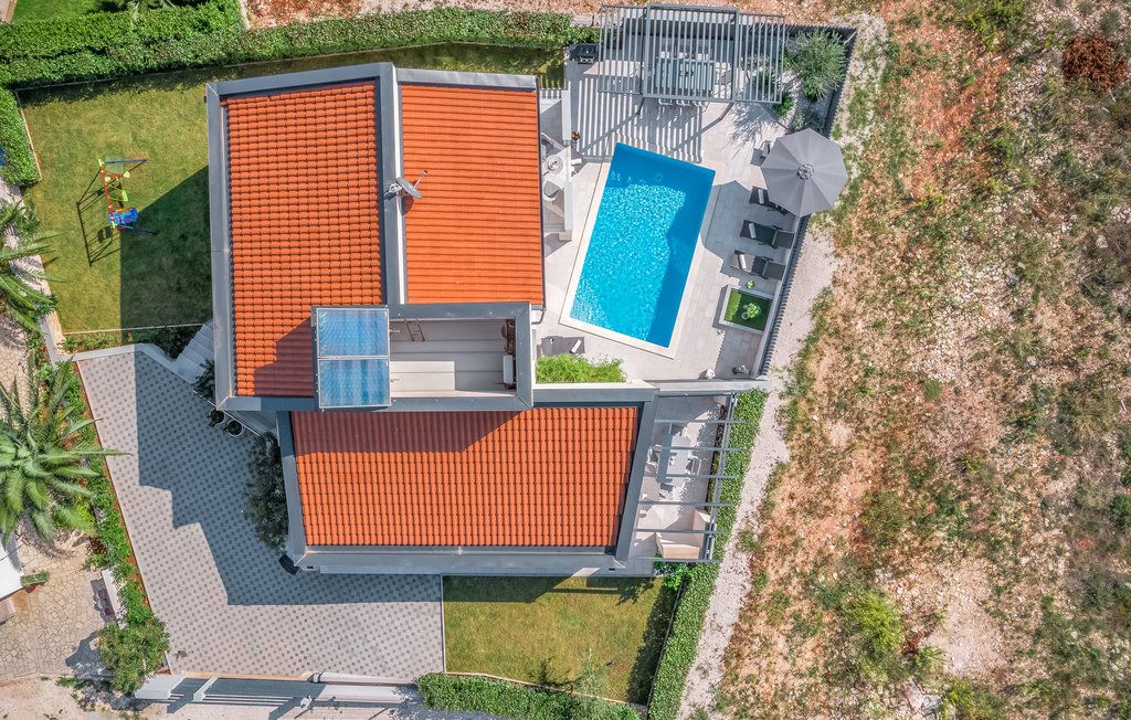 ISZTRIA, MEDULIN - Ház 150 méterre a tengertől, gyönyörű kilátással a tengerre Ez a gyönyörű, vonzó és modern dizájnnal rendelkező nyaraló Medulin híres turistavárosában, a tenger közelében található. Minőségi stílusú bútorokkal berendezett és megfelel a modern turizmus legmagasabb követelményeinek. A földszinten medencére néző nappali, konyha és fürdőszoba, a felső szinten pedig 4 hálószoba és három fürdőszoba található. A ház alagsorában van egy hely a kikapcsolódásra, sok társasjátékkal felnőtteknek és gyerekeknek egyaránt.