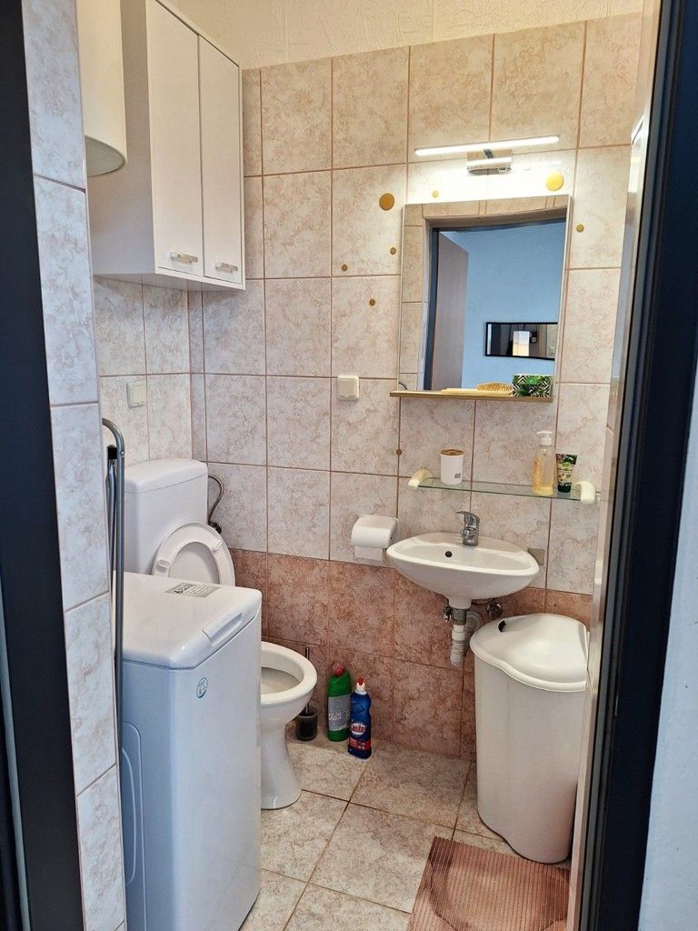 Medulin település az Isztriai-félsziget déli részén található, 29,35 km2-es tengerparti település, nyolc településen, amelyek főként a part mentén helyezkednek el, mintegy 6500 lakossal. Ezek Medulin, Premantura, Banjole, Pomer, Vinkuran, Vintijan, Valbonaša és Pješčana Uvala. Az Isztria csúcsa vagy pontja, ahogyan szokták nevezni, a félsziget egyik legturisztikaibb városához és az Adria húsz leghíresebb turisztikai célpontjának egyikéhez, Medulinhoz tartozik. Bár gazdag kulturális múlttal rendelkezik, a város fölé magasodó kéttornyú, felismerhető templommal, ma már kizárólag a turisták „receptjei” szerint fejlődik és él a város, amit a közel 5000 férőhelyes szálláslehetőség is bizonyít. Medulinban egy épület földszintjén kínálunk 27m2-es lakást 8m2-es terasszal és parkolóhellyel. Az épület 2004-ben épült, összesen 7 lakásos, használati engedéllyel rendelkezik. Az apartman északkeleti fekvésű, Medulin csendes részén, a templom felett, 1500 m-re a központtól és 1800 m-re a strandtól. Alkalmas bérbeadásra vagy lakhatásra. A lakás az épületből és a teraszról bejáratos, étkezős konyha, hálószoba, nappali, fürdőszoba és egy bekerített terasz található. 2022-ben teljesen új bútorokkal és gépekkel lett felújítva, így eladó. A bútorokhoz és a gépekhez garanciális jegyek tartoznak. A hűtés és fűtés klímaberendezéssel történik. Az épület előtt 15 parkolóhely áll az épületben lakók rendelkezésére. 1/1 tulajdon, tehermentes.