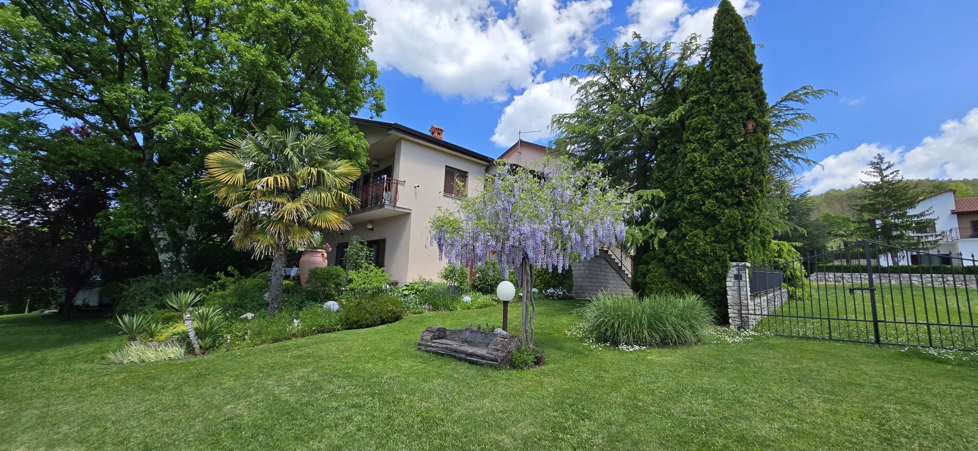 Pazin Isztria megkerülhetetlen szíve, Isztria megye székhelye, ahol a lakosok vállalkozó szelleműek és kényelmesen élnek. Biztonságos és nyitott, az emberek igényeihez igazított város, oktatási és kulturális központ, amely megőrzi az isztriai identitást és a hagyományokat felhasználva új értékeket teremt. Pazin tele van piknikezőhelyekkel a természet szerelmeseinek. Egy gyönyörű patak mellett eladó ez a gyönyörű, felújított családi ház, amelynek gondosan parkosított kertje szóhoz sem jut. A ház különálló, nettó lakóterülete 200 m2 + terasz. A földszinten két nagy szoba található, amelyek felújítása megkezdődött. A leendő tulajdonosnak csak csempét vagy laminált padlót kell leraknia, kívánsága szerint. Van egy nagy garázs is. Belső lépcső vezet az első emeletre, ahol egy különálló apartman található nappalival, konyhával és étkezővel, két erkéllyel, gyönyörű kilátással, egy tárolóhelyiséggel, 3 hálószobával, fürdőszobával és egy WC-vel. Az első emelet külső lépcsőn is megközelíthető. A bejárat és a garázsajtó távirányítós. A 3517 m2-es kert stílusosan berendezett. Sok virág és pálmafa van beültetve, a kis medence pedig különleges hangulatot teremt. Automata öntözőrendszer került beépítésre. A telek egészen egy közeli patakig vezet, amelynek hangja egészen a házig hallható. A háztól nem messze található egy vízesés, amely a környékre látogató belföldi és külföldi látogatók kedvelt piknikezőhelye. A kert mintegy 1700 m2-e építési övezetben található, így lehetőség van medence, nyári konyha vagy további létesítmények építésére. A házat és az egész kertet fal, kerítés és sövénnyel veszik körül, ami további magánéletet biztosít. A ház 1985-ben épült, 1996 óta beköltözhető, a tetőt, a homlokzatot és a faanyagot pedig 2019-ben teljesen felújították. A fokozott biztonság érdekében videó megfigyelőrendszert telepítettek. A házban két emésztőgödör található, de lehetőség van a csatornarendszerre való csatlakozásra is. A ház saját 38 m3-es tartállyal is rendelkezik, és városi vizet is használ. A fűtés központi, fűtőolajjal működik. Van egy kész projekt egy 32 m2-es melléképülethez. Azonnal költözhető!!! Az idilli helyszín valóban el fogja hallgatni, ha a természet és a nyugalom szerelmese, ezért foglalja le utazását időben. Lehetőség!