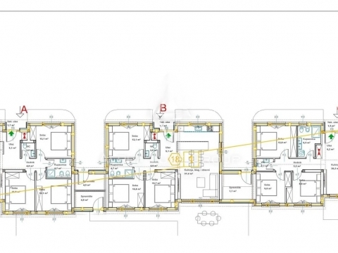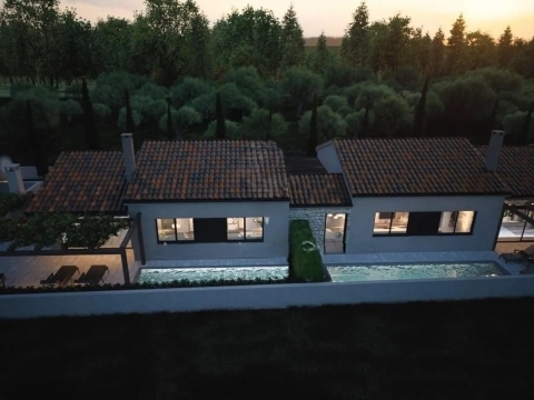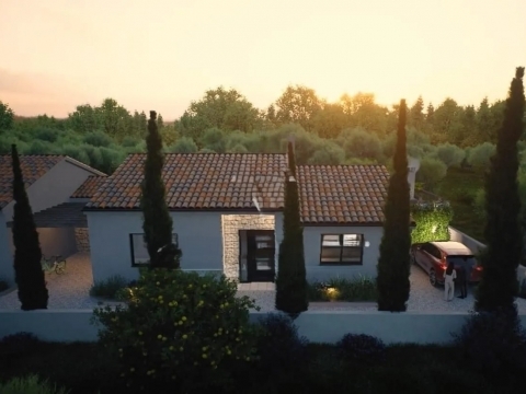 ISZTRIA, POREČ - Meleg, egyszintes ház idilli környezetben Poreč Isztria egyik legvonzóbb városa, a félsziget nyugati partján fekszik, és a történelem, a természet és a modern turizmus tökéletes keverékéről ismert. A várost a lenyűgöző, UNESCO által védett Eufráziusz-bazilika, a festői óváros keskeny kőutcákkal, valamint számos jól karbantartott tengerparti strand és sétány díszíti. Poreč gazdag gasztronómiai és borászati kínálattal, számos kulturális rendezvénysel és változatos sport- és szabadidős tevékenységekkel várja vendégeit egész évben. A jó közlekedési kapcsolatoknak és a fejlett infrastruktúrának köszönhetően Poreč ideális mind a nyaraláshoz, mind az egész éves élethez. A bájos Kaštelir faluban, Nyugat-Isztria zöld hátországában, mindössze 13 kilométerre a tengerparttól és Poreč városától található ez a modern, egyszintes ház, amely a funkcionalitás, a kényelem és a kortárs design tökéletes keverékét kínálja. Szőlőültetvények, olajfaligetek és tipikus isztriai tájak veszik körül, így ez az ingatlan ideális mindazok számára, akik nyugodt életre vágynak autentikus környezetben, mégis minden szükséges szolgáltatás közelében. A ház több mint 91 m² lakótérrel rendelkezik, gondosan megtervezett elrendezéssel. A bejárati csarnok egy tágas nappaliba vezet, amely nyitott koncepcióban kapcsolódik a konyhához és az étkezőhöz. A nagy üvegfalak rengeteg természetes fényt engednek be, és közvetlen hozzáférést biztosítanak a teraszhoz. A három hálószoba kényelmes teret biztosít az egész család számára, míg a fürdőszoba és a további WC a funkcionalitásra és az esztétikára helyezve a hangsúlyt. A ház egész területén található magas mennyezet tovább növeli a teret. A körülbelül 100 m²-es kertrész lehetőséget biztosít egy medence építésére, amely a leendő tulajdonosnak szabadságot ad arra, hogy saját kívánságai és igényei szerint alakítsa ki a kültéri teret. Az ingatlan minőségi anyagokból épült, és egész évben kényelmes tartózkodásra van felszerelve. Háromrétegű üvegezésű műanyag ablakok és fehér-antracit kombinációjú alumínium bejárati ajtók vannak beépítve. Elektromos padlófűtés és légkondicionáló található a nappaliban és a folyosón, a teljes rendszer pedig mobilalkalmazáson keresztül vezérelhető. A fokozott biztonság érdekében az épület mindkét oldalán videómegfigyelő rendszert terveznek, míg a napelemek hozzájárulnak az energia fenntarthatóságához. A bejáratnál elektromos járművek számára töltőállomást telepítenek. A ház kulcsrakész állapotban kerül értékesítésre, a munkálatok várható befejezése 2025 vége. A jelenlegi építési fázisban is lehetőség van vásárlásra, ami lehetőséget biztosít a végleges részletek és az esetleges módosítások egyeztetésére. Ez a modern isztriai egyszintes ház kiváló lehetőséget kínál lakhatásra, nyaralásra vagy befektetésre, ötvözve a csendes elhelyezkedést, a minőségi kivitelezést és a kültéri tér elrendezésének rugalmasságát. Minden további információért és túra szervezéséhez készséggel állunk rendelkezésére.Ingatlan adatok