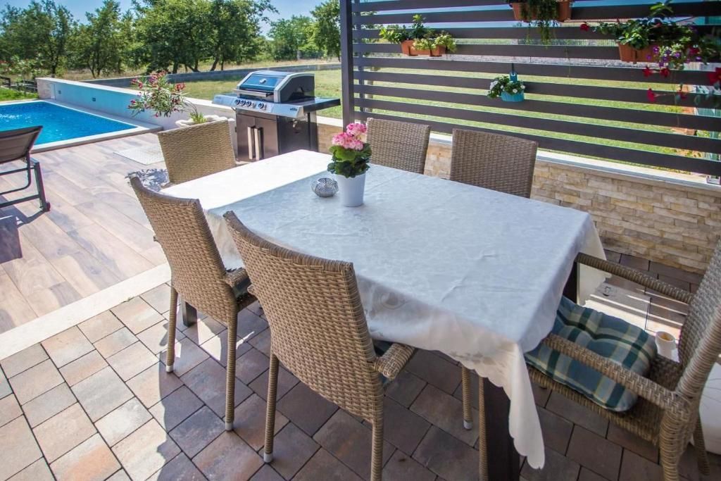 ISZTRIA, POREČ - Minőségi és meleg családi ház Poreč közelében. Egy kis településen, a kihagyhatatlan Poreč város közelében található ez a minőségi és meleg családi ház, amely figyelmet érdemel. AZ INGATLAN LEÍRÁSA; Az egyszintes villa egy tágas, 1063m2-es telken található, 85m2 lakóterületen belül melegségével, időtlen dekorációjával és kényelmével fog elvarázsolni. A villába belépve van egy kis folyosó, amely elválasztja a privát belső teret a mindennapi életet és szórakozást szolgáló résztől. Így a tágas és a mindennapi élethez maximálisan nyitott területen modern, teljesen felszerelt konyha szigettel, családi ebédhez vagy késő esti baráti bulihoz ideális étkező, valamint tágas nappali található, amely úgy van berendezve a kedvenc filmek és sorozatok még érdekesebbek. A kényelmes és minőségi bútorok ehhez minden bizonnyal hozzájárulnak. A nappaliból egy eltolható üvegfalon keresztül a parkosított udvarra és úszómedencére nyílik a kijárat napozóval. A villa privát részében két hálószoba található, amelyek közül az egyik a fő hálószoba saját fürdőszobával és a másik vendég fürdőszoba. Ez az egyszintes villa minőségi, rusztikus stílusú, új bútorokkal van felszerelve, ami a ház karakterét kölcsönzi, így kerül értékesítésre. UDVAR; Az udvar teljesen bekerített, érzékelőkkel ellátott automata kapun keresztül közelíthető meg, amely után 2-3 autó számára elegendő parkolóhely áll rendelkezésre. A kert rendezésében korszerű megközelítést alkalmaztak a növényzet karbantartásának egyszerűségével, amit automata öntözőrendszer segít. Helyi gyógynövényekkel és növényekkel, például olajfákkal gazdagították, és új növényzetet telepítettek, hogy a meleg nyári hónapokban magánéletet és több árnyékot biztosítsanak. Különösen érdekessé teszi ezt az ingatlant, hogy a telek elején található, ami azt jelenti, hogy a további 500 m2 telek szabadon marad arra az esetre, ha az új tulajdonosok további létesítmények, vagy másik lakóépület építésére vágynak, illetve igénylik. A jelenlegi tulajdonosoknak van egy projektje a ház korszerűsítésére a többi telken. TOVÁBBI INFORMÁCIÓK; A fűtés-hűtés okosklímák segítségével megoldott, de a nappaliban is van lehetőség kémény segítségével fával vagy pellettel fűtésre. Ideális befektetési lehetőség egy ideális meleg és biztonságos családi otthon értelmében, de fekvésének vonzerejét és a villa tartalmát tekintve turisztikai bérbeadás irányába is van befektetési lehetőség. Bármilyen kérdéssel, szükséges információval vagy a villa megtekintésére vonatkozó időpont egyeztetéssel kapcsolatban forduljon hozzánk bizalommal. Az ügynökségi jutalék az Általános Szerződési Feltételek szerint kerül felszámításra.Ingatlan adatok
