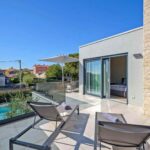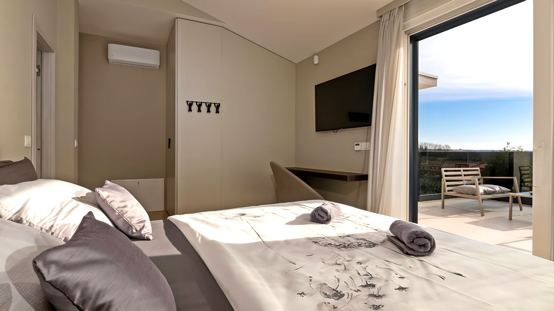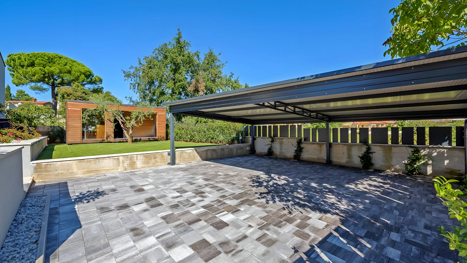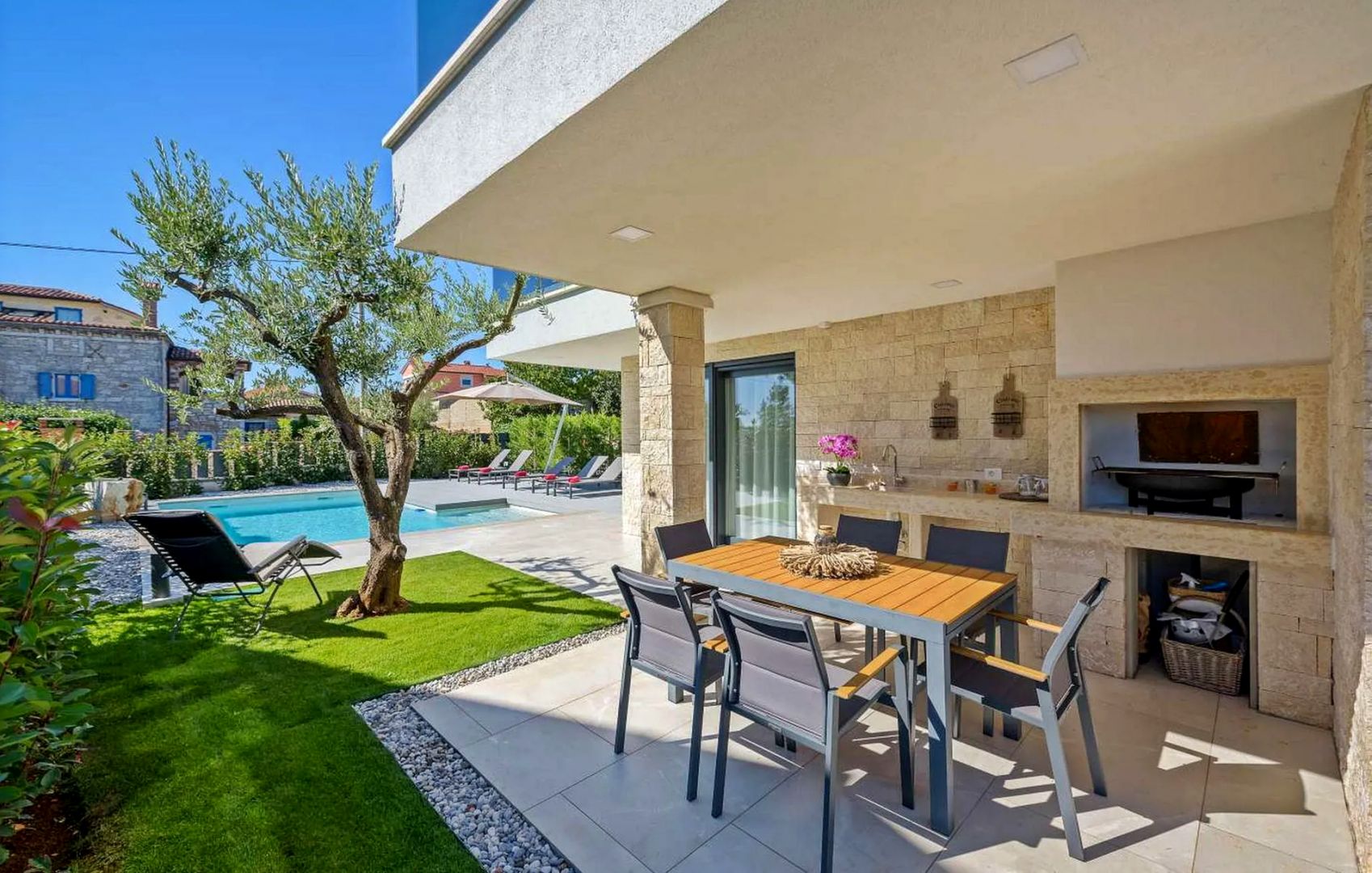 Kellemes mediterrán klímában fürdő, a nyugati isztriai partvidék szívében található Poreč ősi városa és megőrzött természeti szépségű partvidéke, parkosított parkjai, egészen a tengerig nyúló fenyő- és tölgyligetek, amelyek mentén a tiszta tenger, strandok, öblök és szigetek váltakoznak, 139 km2-es területen és településekből áll. A városi tengerparti város identitásával Poreč a kultúra, a sport, a szórakozás, a turizmus és az igazi vendéglátás városa. A horvát turizmus egyik legvonzóbb városa, amely egyedülállóan ötvözi Isztria természeti szépségét, a gazdag kulturális és történelmi örökséget, valamint a legmodernebb turisztikai célpont legmodernebb szolgáltatásait. A kulturális műemléknek számító óvárosmag harmóniája az egyik leghíresebb isztriai kulturális műemlékkel, az UNESCO Világörökség listáján szereplő Euphrasius-bazilikával, valamint az Adria legkarbantartottabb és legjobban felszerelt turisztikai üdülőhelyeivel felejthetetlen élmények mozaikját alkotja. Poreč is egy olyan város, amely sokkal több, mint egy nyári napsütéses és tengeri célpont. Poreč egy olyan város, amelyet az emberek számára méretre szabtak. Egy város, ahol állandó lendület van az életkörülmények javítására és a különböző területeken történő előrelépésre. Egy kellemes, biztonságos és jól karbantartott lakóhely, ahol mindenki megtalálja a maga helyét, egy olyan város, amely minden generáció számára magas szociális érzékenységgel jár adómentességgel. Poreč városának közelében egy vonzó ház medencével eladó. Csendes környéken található, családi házak és nyaralók körül, tökéletes egyensúlyt kínálva a tenger közelsége és a városi szolgáltatások között. A ház építészete formailag és színvilágában beleolvad a településbe és a tájba, megteremtve a természeti környezet és a modern dizájn szinergiáját, miközben a kivitelezés minősége garantálja a hosszú távú elégedettséget és életminőséget. Ez egy lakóegység, amelynek területe két ízlésesen berendezett, funkcionális alaprajzú emeleten oszlik el. A földszint a konyhát, az ebédlőt és a nappalit egyesítő nyitott térből áll, melyből ki lehet jutni egy fedett teraszra, melyben nyárikonyha, hálószobák saját fürdőszobával, vendég WC, tároló helyiség és technikai helyiségek találhatók. Az első emeleten két hálószoba található saját fürdőszobával és kijárattal a teraszra. Az udvar parkosított, bekerített, a tökéletes harmóniát pedig napozórésszel kiegészített úszómedence és wellness részlegként szolgáló mobil melléképület egészíti ki szaunával, pezsgőfürdővel, zuhanyzóval. Az ingatlan kiváló elhelyezkedése, belső és külső térrendezése lehetőséget ad egy kényelmes családi életre, vagy egy turisztikai bérbeadási vállalkozásba való befektetésre.