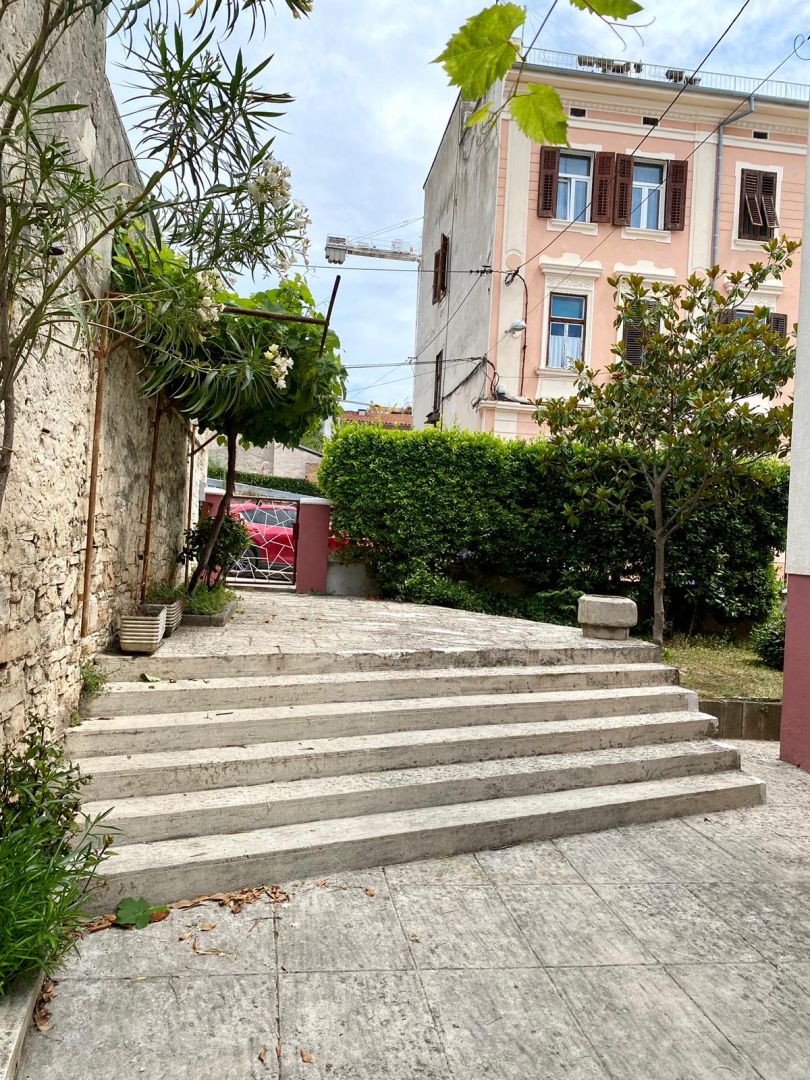 Pula, központ - kertes, garázzsal rendelkező ház (LAKÁS) emelete eladó! Eladó egy családi ház emelete a város központjában, természetben egy 109m2-es lakás. Az ingatlanhoz tartozik egy földszint és egy emelet, az udvarban 25 m2-es saját garázs és a tulajdonában lévő épület környezetében egy kert. A földszinten található a "nyári konyha" gyönyörűen díszített kandallóval, az emeleten pedig előszoba, konyha, étkező, nappali, két hálószoba és terasz.