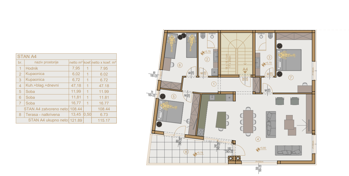HELYSZÍN LEÍRÁSA: A városközponttól nem messze, mindössze 1,5 km-re található ez az építési telek, ahol ez a 4 új lakóépület kap helyet. Néhány percre a városközponttól, közel a pólai elkerülő úthoz, bevásárlóközponthoz, szupermarkethez… ezek mind olyan helyek, amelyek igazán kiválóak a családi élet új kezdetéhez, vagy egy jó befektetés helyszínéül. INGATLAN LEÍRÁSA: A kérdéses lakás egy kisméretű lakóépület második és legfelső emeletén található, mindössze 4 lakóegységből. A lakás nagyon szépen van kialakítva, és a nappali teljesen elkülönül a privát résztől. Érkezéskor azonnal belépünk a lakást elválasztó folyosóra és jobbra egy tágas nappalit találunk konyhával és étkezővel, valamint az egész falon átnyúló üvegfallal. A lakás privát része két hálószobát rejt, közös fürdőszobával. Az apartman legvégén található egy hálószoba saját fürdőszobával és egy tágas teraszra nyíló hozzáféréssel. MŰSZAKI LEÍRÁS – Elektromos padlófűtéssel felszerelt fürdőszobák – Inverteres klímák – Kiváló minőségű alumínium asztalosok antracitszürke színben – 10cm homlokzati szigetelés – Minőségi kerámia – Várható kezdés: 2025. május – Befejezés becsült dátuma: 2026. május Minden új tulajdonosnak joga van saját parkolóhelyet választani. A kisebb lakásokhoz egy parkolóhely, míg a nagyobb lakásokhoz két parkolóhely tartozik: – fedett parkoló: 7500 € – fedett parkoló: 18750 € Bármilyen kérdéssel, további információval és az ingatlan megtekintésének megszervezésével kapcsolatban forduljon ügynökéhez.