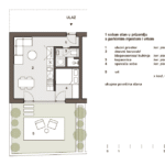 Isztriára északnyugat felől érkezve elsőként Savudrija fogadja, amely az azonos nevű félsziget szélén található. A történelemben gazdag kis halászfalut először a 12. században említik, és a környék régészeti leletei azt mutatják, hogy ez a terület a kőkorszak óta lakott volt. A tagolt, többnyire sziklás partszakasz, amelyet apró kavicsos strandok tarkítanak, és gazdag mediterrán növényzet vesz körül, számos turistát vonz, akik örömmel térnek vissza. A földszinten két apartmant alakítottak ki, mindkettő közvetlen bejárattal a földszintről. Mindkét földszinti apartman két hálószobával rendelkezik (egy nappalit konyhával és étkezővel, egy hálószobát, egy fürdőszobát és egy előszobát tartalmaznak), közvetlen hozzáféréssel a telek délnyugati oldalán található kültéri teraszhoz és kerthez