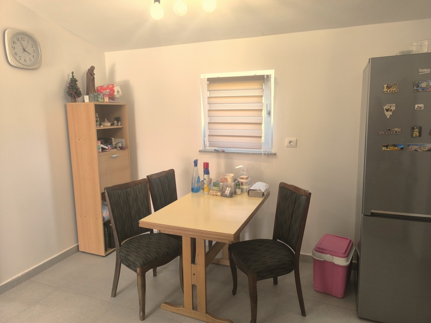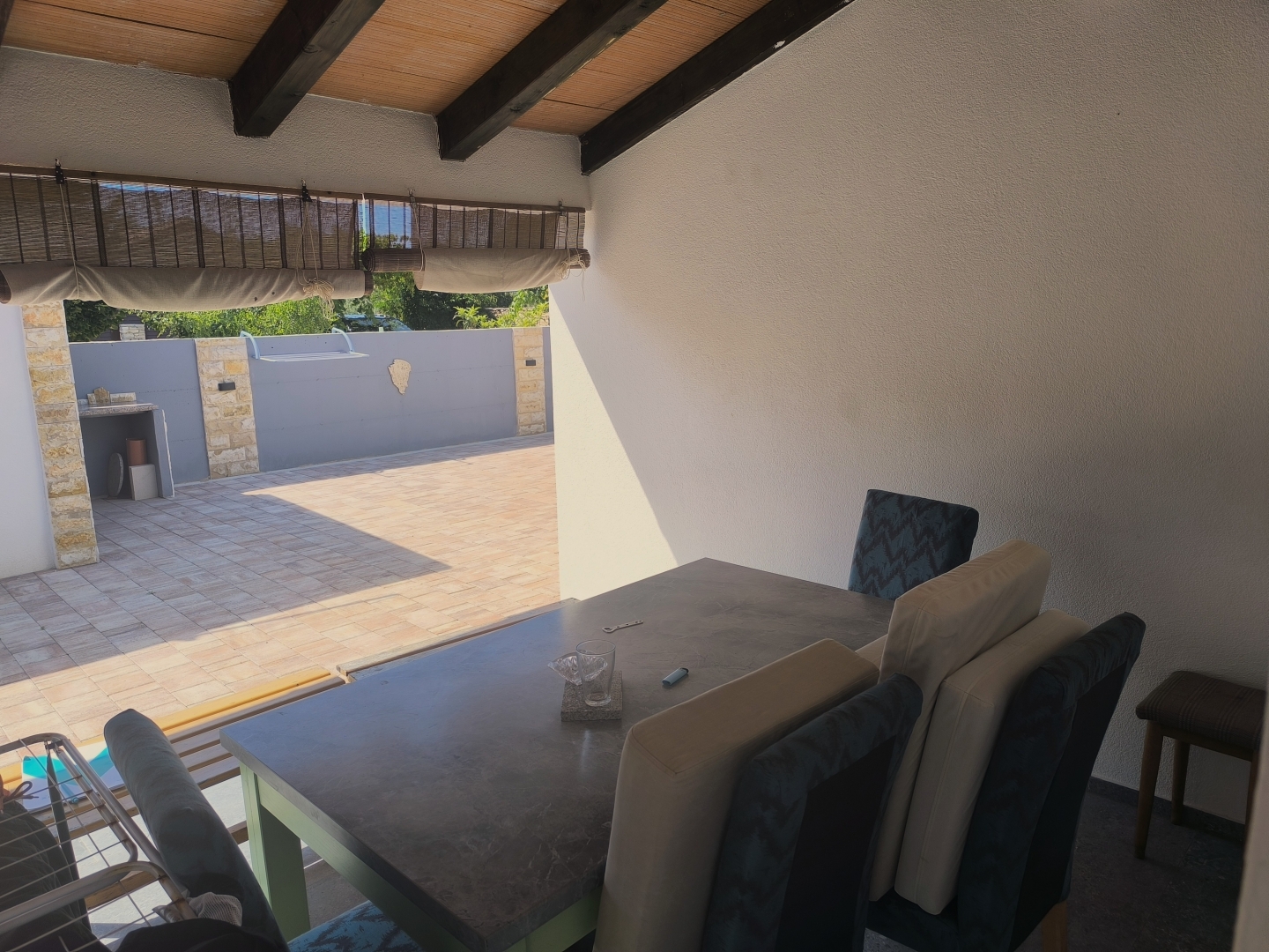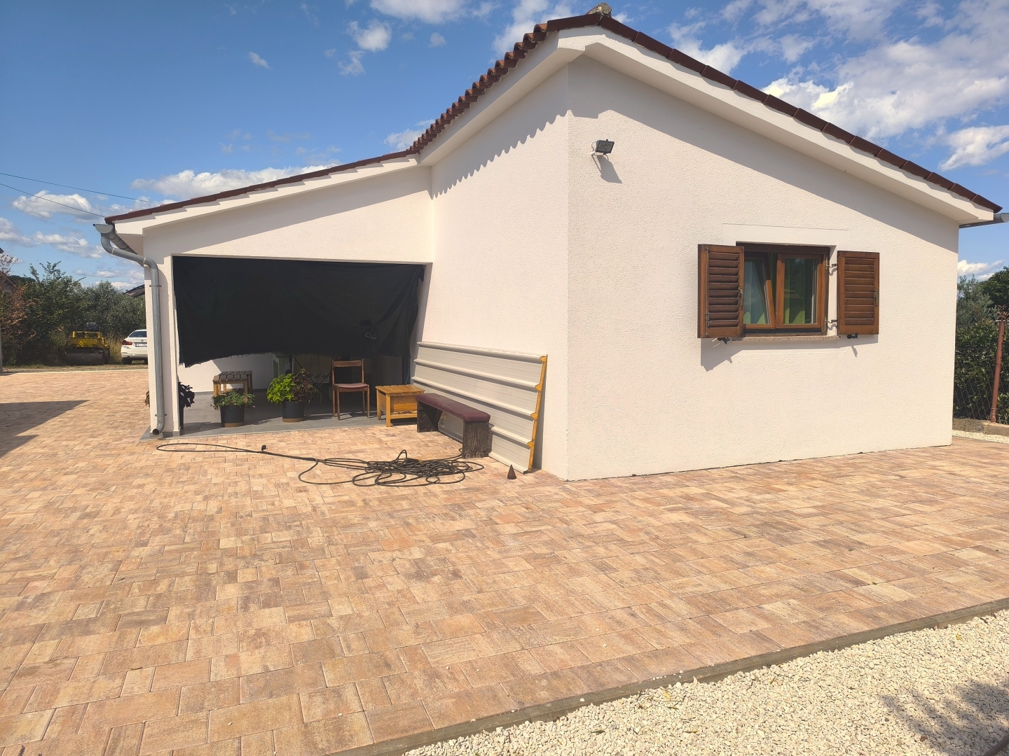Eladó ház Šišanban – 101 m2 lakótér + tágas udvar 953 m2 101 m2-es családi ház egy csendes faluban. A ház 2000-ben épült, 2014-ben hivatalosan is használatba vették, és idén felújították. A ház megfelelő dokumentációval rendelkezik – Készült állapotról szóló nyilatkozat. 2 hálószobából, konyhából és étkezőből, előszobából, nappaliból, fürdőszobából és fedett, csempézett teraszból áll. Valamint egy nyári konyha tárolóval és kültéri kandallóval. További fedett tároló. Nagy, térkövezett udvar és további 953 m2-es kert olajfaligettel és gyümölcsössel, ahol 6 felnőtt és 5 fiatal olajfa, cseresznye, meggy, alma, szilva… További parkolóhelyek az udvarban. Ideális családi életre, nyaralásra vagy befektetésnek turisztikai bérbeadás céljából. Az ingatlan csendes, zöldövezeti környéken található, mégis közel minden szükséges szolgáltatáshoz, mindössze 10 perces autóútra Šišan első gyönyörű, vadregényes strandjaitól és Isztria délkeleti partjának kristálytiszta tengerétől. Kiváló lehetőség családi élethez vagy turisztikai célú bérléshez.