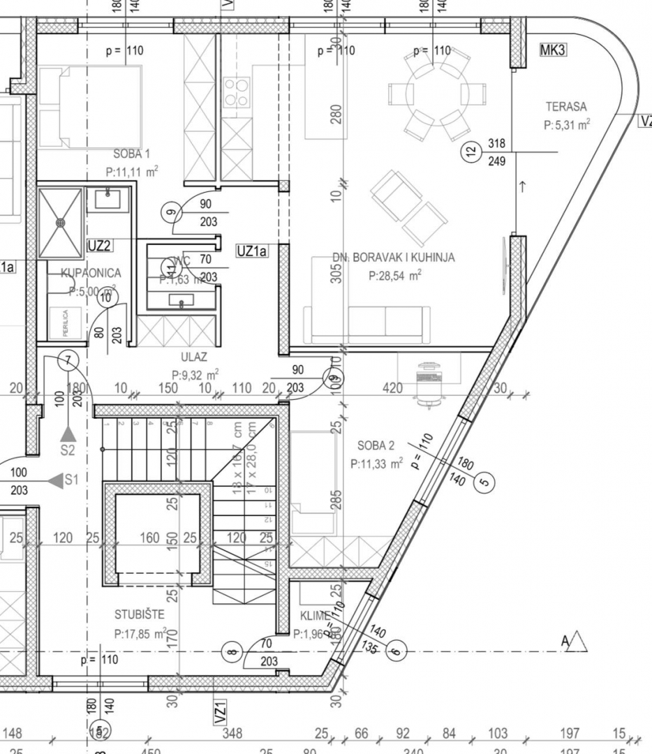 Tar városában, Poreč közelében található egy modern, új építésű apartman, amely ötvözi a kényelmet, az esztétikát és ideális helyszínt biztosít a mindennapi élethez vagy egy nyári tartózkodáshoz. Egy városi üzleti-lakóépület részeként, amely hat lakóegységből és egy üzlethelyiségből áll a földszinten, ez az apartman gyönyörű kilátást nyújt a tengerre, és minden fontos szolgáltatáshoz közel van – az óvodától és iskolától kezdve az üzleteken, kávézókon, gyógyszertárakon és éttermeken át. A strandok mindössze néhány perc sétára találhatók. A 69,59 m²-es apartman funkcionális és modern módon lett kialakítva, és egy előszobából, egy nyitott terű nappaliból konyhával és étkezővel, két hálószobából, egy fürdőszobából, egy további WC-ből és egy erkélyből áll, amely a reggeli kávé elfogyasztására csábít a tengerparti kilátással. Az építkezés során kiváló minőségű anyagokat használtak, a kerámiát pedig a vevő választhatja ki, amely tovább igazodik a személyes preferenciákhoz. Az alapfelszereltség részeként csendes liftek, magas biztonsági szintű biztonsági ajtók és videós kaputelefonok biztosítják a magas szintű kényelmet és biztonságot. Az épület építése 2025 májusában kezdődött, a beköltözés lehetőségével egybekötött befejezés várhatóan 2027 márciusának végére várható, ami elegendő időt biztosít a leendő otthon megszervezésére, személyre szabására és előkészítésére. Ez az ingatlan a modern építkezés, a csendes, mégis tágas elhelyezkedés és a minőségi élettér tökéletes kombinációját képviseli – ideális lehetőség azok számára, akik új fejezetet keresnek életükben a tengerparton.
