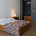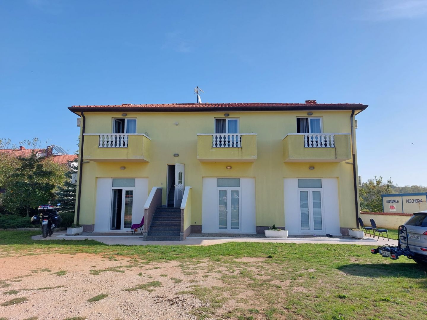 A ház a földszinten és az első emeleten átnyúlik, és 5 stúdió apartmant tartalmaz. A földszinten 2 apartman található, mindegyik saját fürdőszobával, a belső lépcső pedig az emeletre vezet, ahol további 3 apartman található, mindegyik saját fürdőszobával és terasszal. A leendő tulajdonos tetszés szerint rendezheti a házban lévő szobák elrendezését, vagyis megtarthatja a garzonlakásokat, vagy átalakíthatja az egész házat családi életre. Fűtése gáz, klíma és fűtőtestek. A ház egy 798 m2-es telken található, mely jelenleg több autó parkolójaként is szolgál, de a leendő tulajdonosnak van elég helye uszodával egybekötött uszoda építésére. Lehetőség van egy további lakással rendelkező üzletház vásárlására is. A felszereltség közelsége miatt ez az apartmanház ideális a turisták folyamatos bérbeadásához, mivel évről évre több lakás kereshető Isztrián.