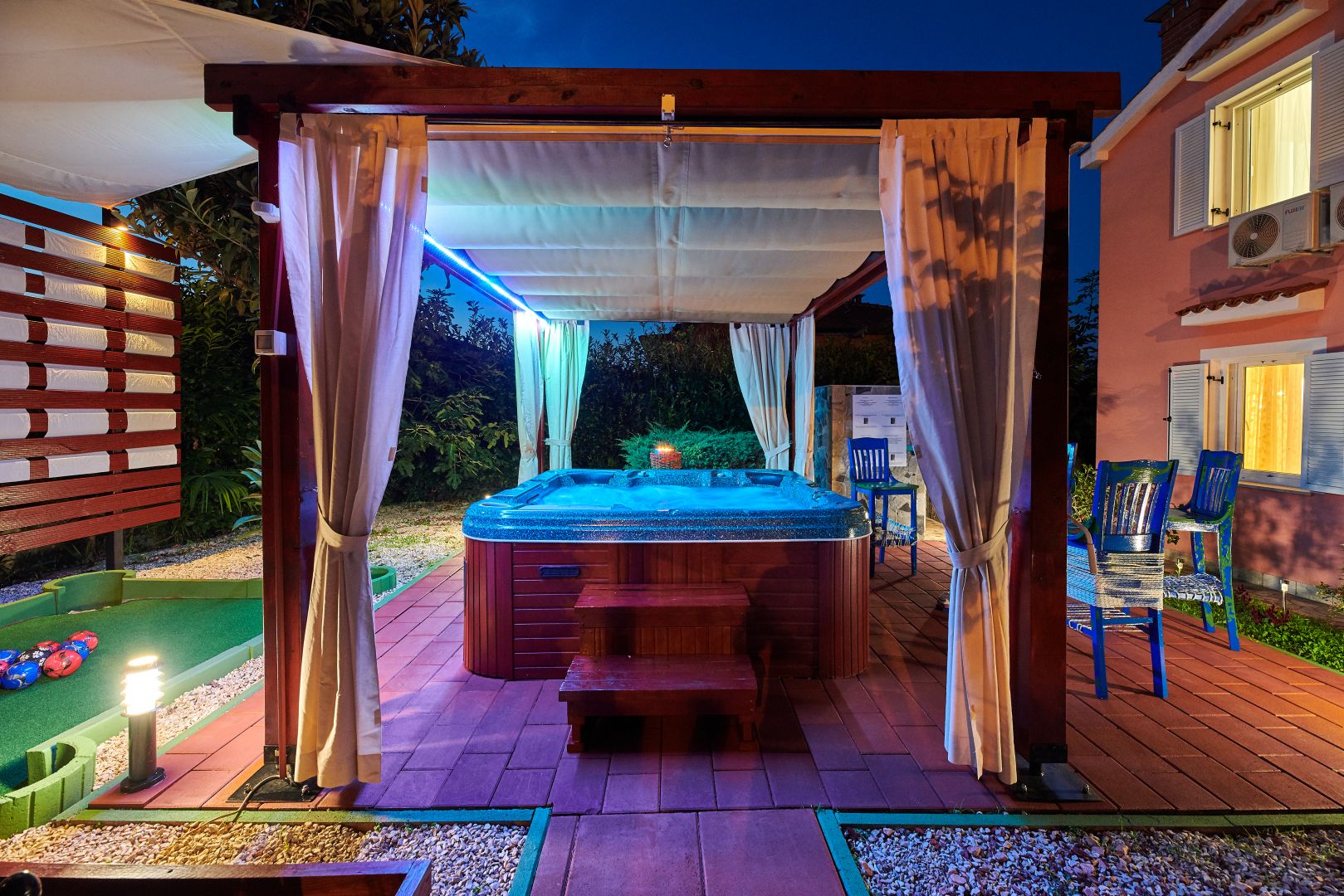 ISZTRIA, UMAG – Villa medencével Umag egy mediterrán klímával rendelkező város Isztria nyugati partján, és 45 km-es partszakaszon keresztül a legjobb bevezető a Földközi-tenger másfajta élményeihez. A város története nagyon érdekes. Római nemesek fedezték fel, és úgy döntöttek, hogy nyári rezidenciának tulajdonítják. Az akkori idők pompáját és pompáját ma is tükrözik az óváros velencei házai.