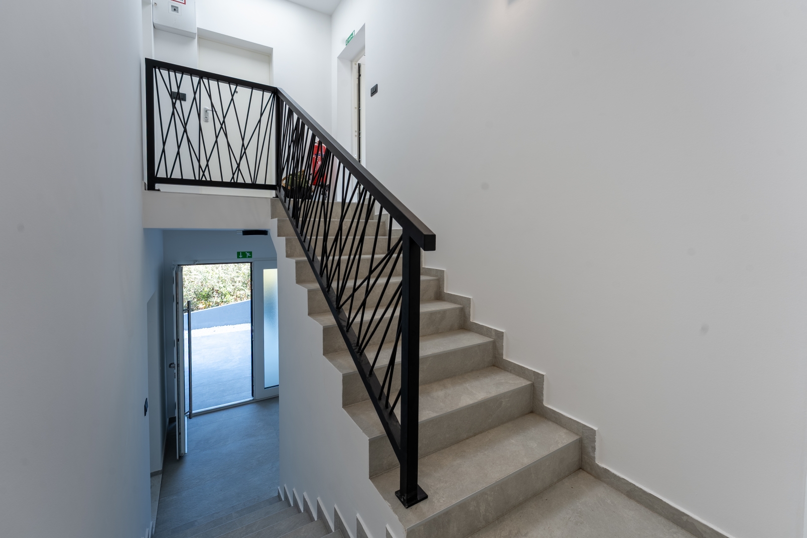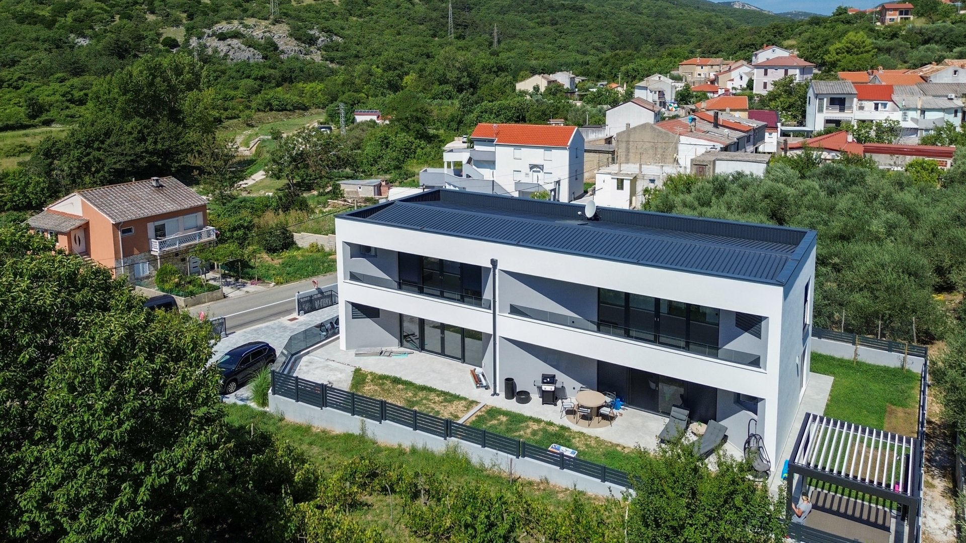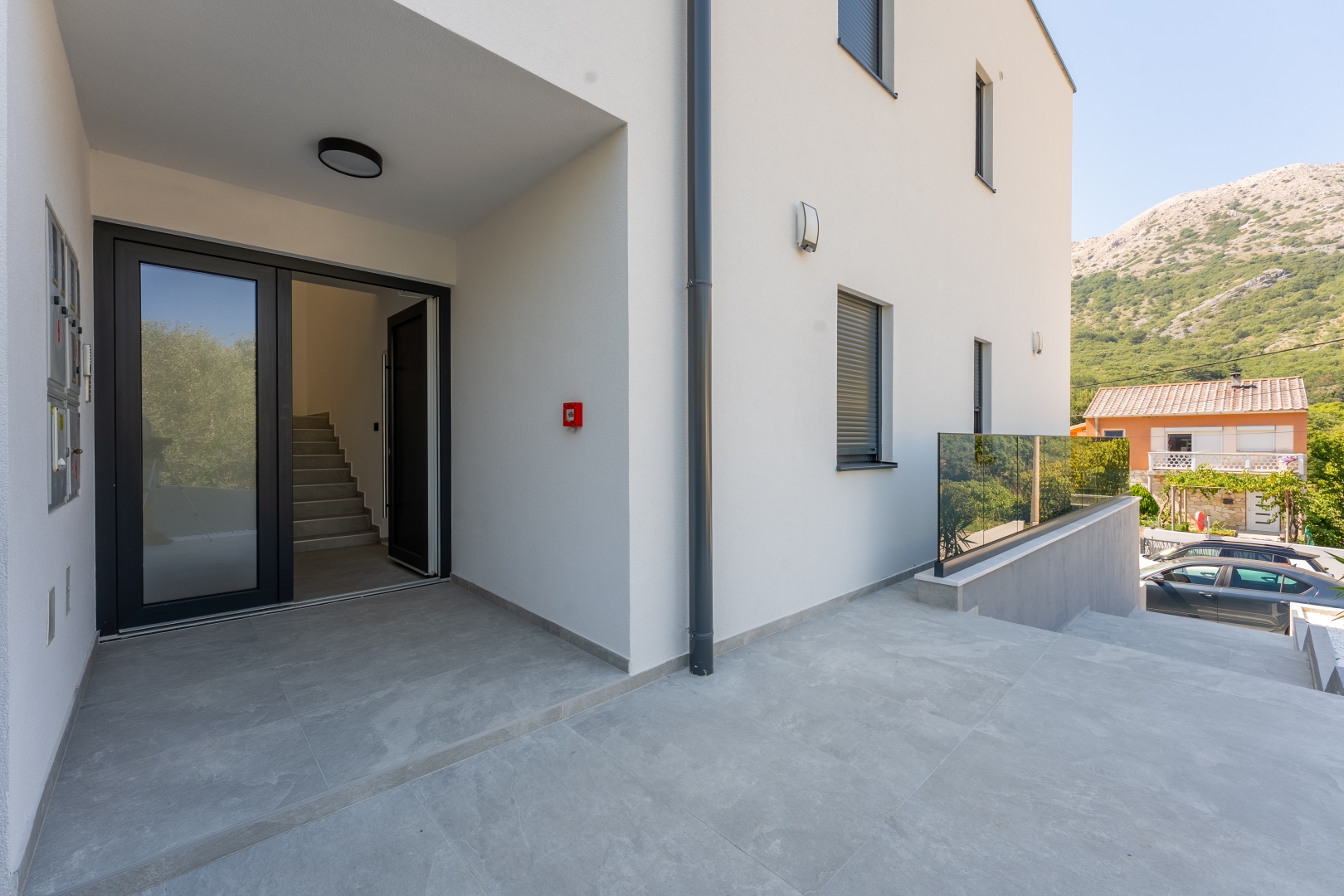 Eladó egy bájos lakás egy új épület első emeletén Baška közelében, a gyönyörű Krk szigeten, mindössze 4 km-re a tengertől. Ez a zöld növényzettel és olajfaligetekkel körülvett modern épület békés és természetes környezetet biztosít, amely ideális családok és bárki számára, aki szeretné élvezni a szigeti élet előnyeit. A 64,05 m²-es apartman egy tágas amerikai konyhás étkezővel és nappalival, két kényelmes hálószobával és egy modern fürdőszobával rendelkezik. A nappaliból egy tágas, 12,39 m²-es erkély nyílik, amely tökéletes a reggeli kávézáshoz vagy az esti kikapcsolódáshoz. A lakás déli fekvése rengeteg természetes fényt biztosít egész nap. A lakáshoz tartozik egy tároló az épület földszintjén és két parkolóhely a közös kertben. Kiváló minőségű alumínium asztalosszerkezettel, elektromos redőnnyel és biztonsági ajtókkal van felszerelve, ami biztosítja a biztonságot és a kényelmet. A Daikin klímaberendezései egész évben kellemes hőmérsékletet garantálnak, míg a kültéri egységek diszkréten el vannak rejtve. Az építkezés során minőségi anyagokat használtak, beleértve a modern szanitereket, kerámiákat és egyéb burkolatokat, ami tovább hangsúlyozza ennek a lakásnak a luxusát és eleganciáját. A vevő mentesül az ingatlan-átruházási illeték megfizetése alól, ami további anyagi előnyt jelent. Ne hagyja ki a lehetőséget, hogy tulajdonosa legyen ennek a gyönyörű lakásnak, a lakás Önre vár!