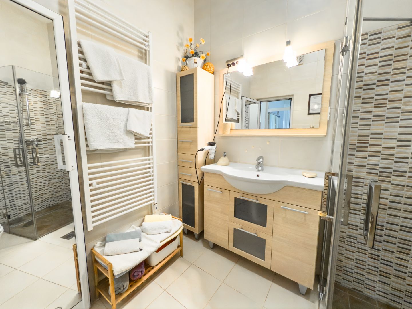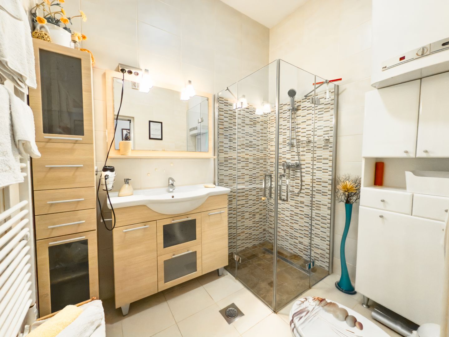 Közvetlenül az első sorban a tengertől, Baška egyik legkívánatosabb utcájában található egy földszinti ingatlan, amely ötvözi a kiváló elhelyezkedést, a funkcionalitást és a teljes magánélet érzését. A béke, a tenger és a természet ölelésében, ez az ingatlan mindössze 20 méterre található a strandtól, és minden részletét úgy tervezték, hogy maximális élményt nyújtson az Adriai-tenger egyik legszebb öblében. Az 50 m²-es apartman tökéletes elrendezésű – egy hálószobából, egy modern fürdőszobából, egy nappaliból, egy konyhából és egy étkezőből áll, nyitott koncepcióban, valamint egy fedett loggiából és egy saját teraszból egy kis privát kerttel – ideális hely reggeli kávézáshoz, ebédhez tengerre néző kilátással vagy egy esti szünethez a hullámok hangjával. A loggia, amelyet a nappali meghosszabbításaként terveztek, kivételes stílussal és gondossággal berendezett – a mindennapi élet központi terévé válik, a lélegzetelállító tengerre nyíló akadálytalan kilátással. A lakás belső terét hangulatvilágítás és csillagos égbolt díszíti a mennyezeten, amely a nap bármely szakában egyedülálló kikapcsolódást teremt. A konyha egyedi tervezésű, kiváló minőségű és modern, teljesen funkcionális és harmonikusan integrálódik a térbe, az esztétikára és a praktikumra helyezve a hangsúlyt. A tér minden szeglete természetes fénnyel teli, a belső tér melegsége pedig tovább hangsúlyozza a kényelem és az otthon benyomását. A lakáshoz két tárolóhelyiség tartozik – az egyik a lépcső alatt található (6 m²), ideális sportfelszerelések vagy strandfelszerelések tárolására, a másik egy 10 m²-es különálló helyiség, amely további tárolóhelyiségként, műhelyként vagy privát kamraként is szolgálhat. Saját parkolóhely található közvetlenül a bejárat előtt, így mindenkor könnyű hozzáférést biztosít. Ez az ingatlan igazi ritkaság a piacon – a tengerparti elhelyezkedés, a földszint magánélete, a kültéri tér és a kivételes hangulat kombinációja teszi tökéletes választássá azok számára, akik valóban mediterrán életmódra vágynak. A tenger szó szerint az első szomszédod. További információkért és megtekintéshez fordulj hozzám bizalommal.