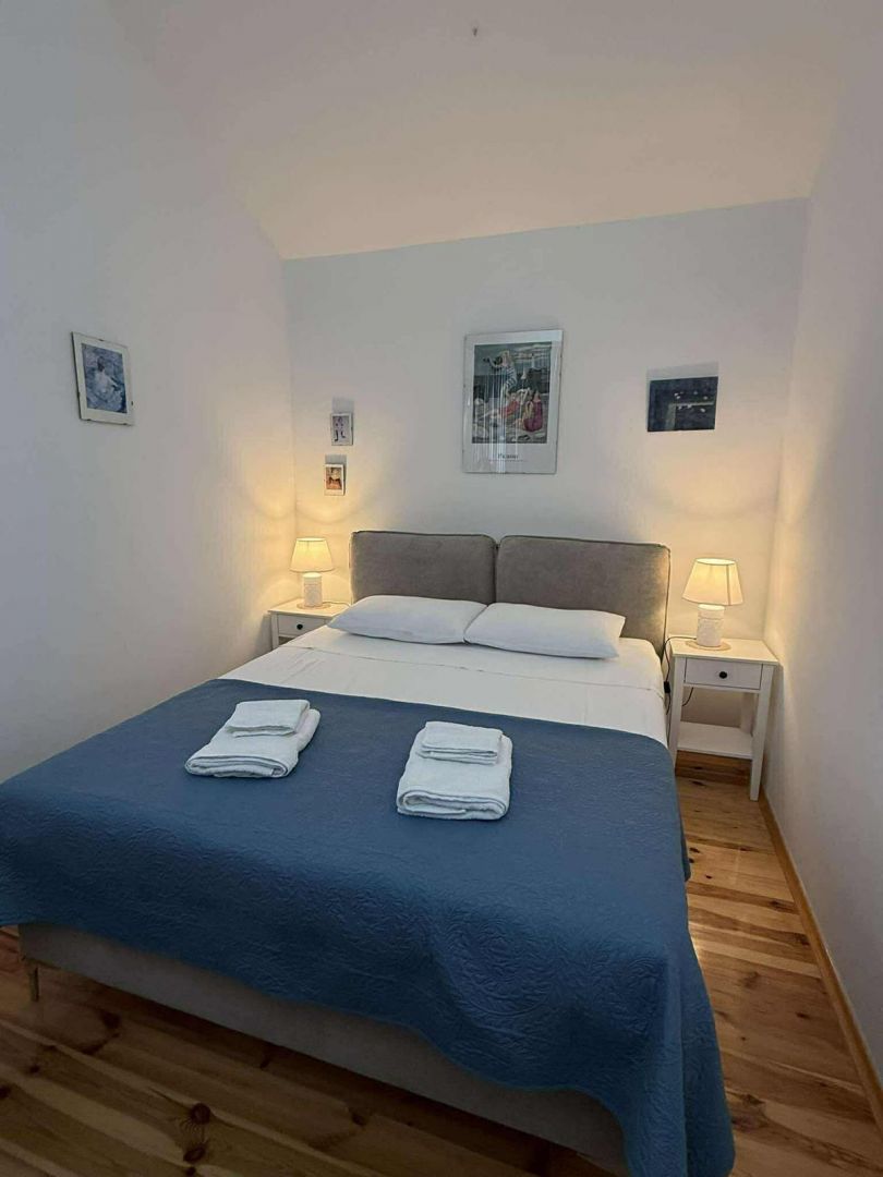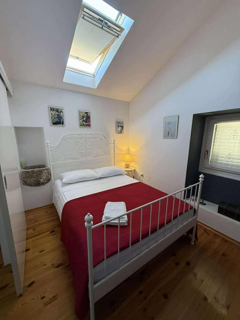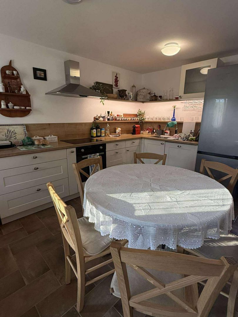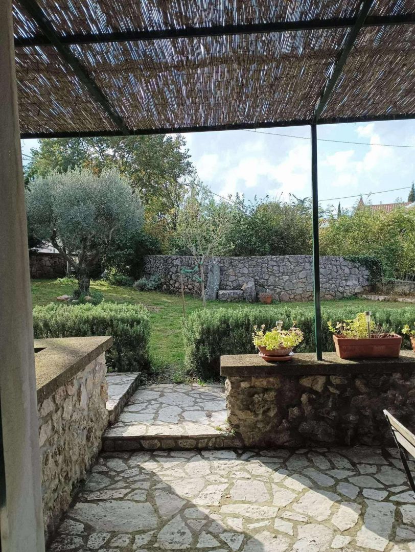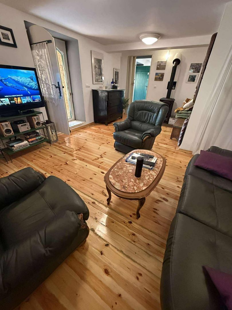 Ez a bájos kőház, amelyet 2021-ben teljesen felújítottak, a hiteles mediterrán stílus és a modern kényelem tökéletes keverékét testesíti meg. Egy 960 m²-es telken található, és 100 m² lakóteret kínál két szinten. A földszinten egy tágas nappali található fatüzelésű kályhával, konyha és étkező, míg az emeleten két hálószoba, fürdőszoba, egy nagy előszoba kanapéággyal és kijárattal a tengerre néző teraszra. A ház három külön bejárattal rendelkezik, ami ideális egy nagyobb család vagy turisták számára. A fűtést és hűtést légkondicionáló, kályhák és fali fűtőtestek biztosítják. A kültéri területen sós vizes medence (8×4 m), napozórész, három terasz (kettő a földszinten és egy az emeleten), egy autentikus WC a medence mellett, grillezőhely és egy parkosított udvar található több parkolóhellyel. A ház csendes, zöld környezetben található Malinska közelében, Krk szigetén. A helyszín teljes nyugalmat, magánéletet és pihentető tengerre néző kilátást kínál, ugyanakkor közel van a turisztikai és városi szolgáltatásokhoz. Ideális azok számára, akik egyensúlyt keresnek a természet és a megközelíthetőség között. Az ingatlan alkalmas egész éves lakhatásra, nyaralásra vagy egy sikeres turisztikai bérlés folytatására. A három bejárat, az elrendezés és a felszereltség rugalmasságot biztosít családi élet, többgenerációs szállás vagy turisták számára. A megfelelő dokumentáció és a hitelre történő vásárlás lehetősége tovább segíti a befektetést.