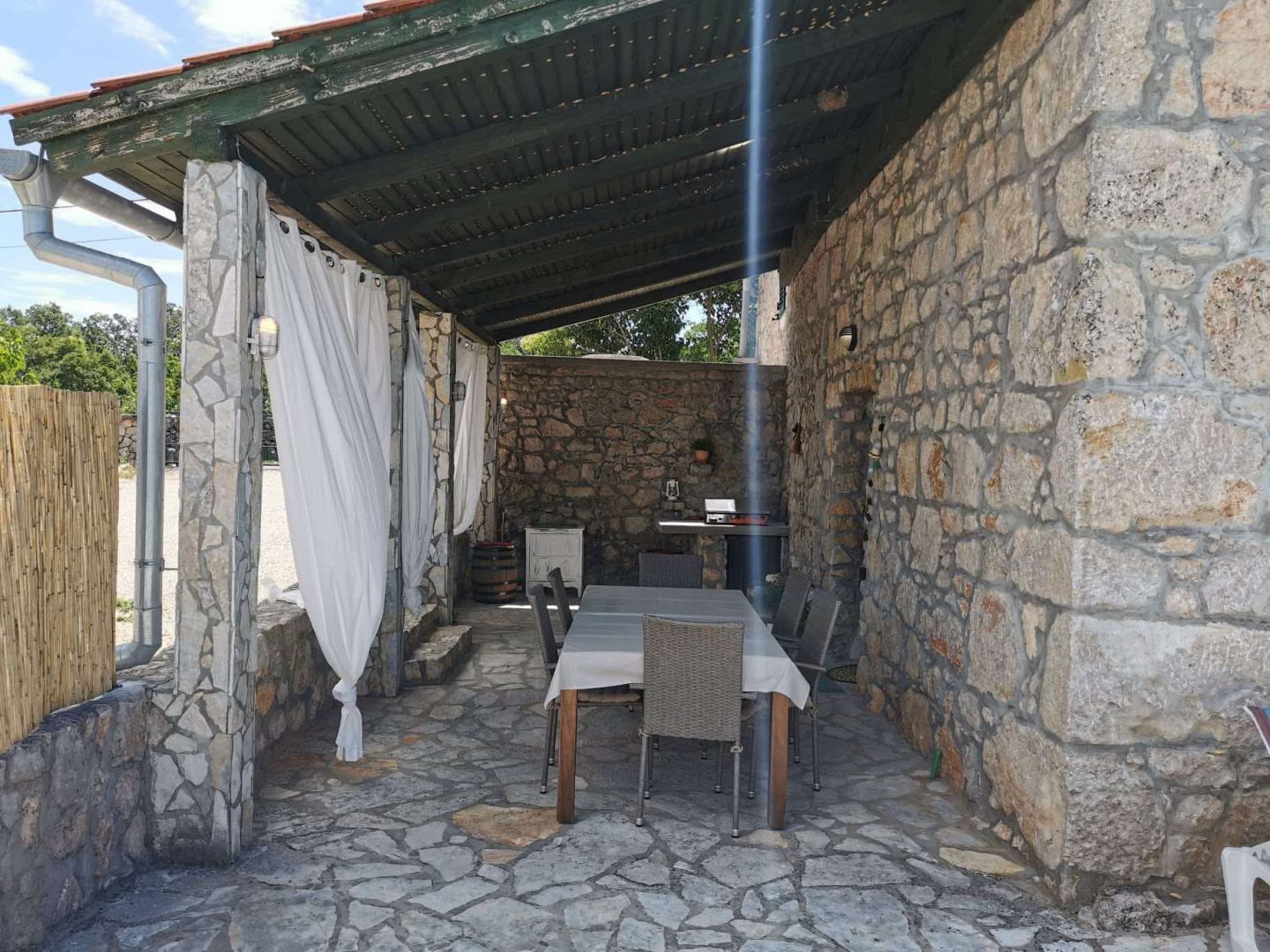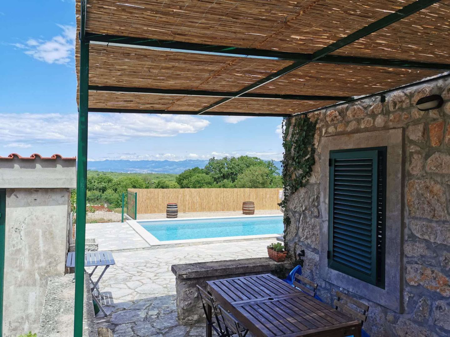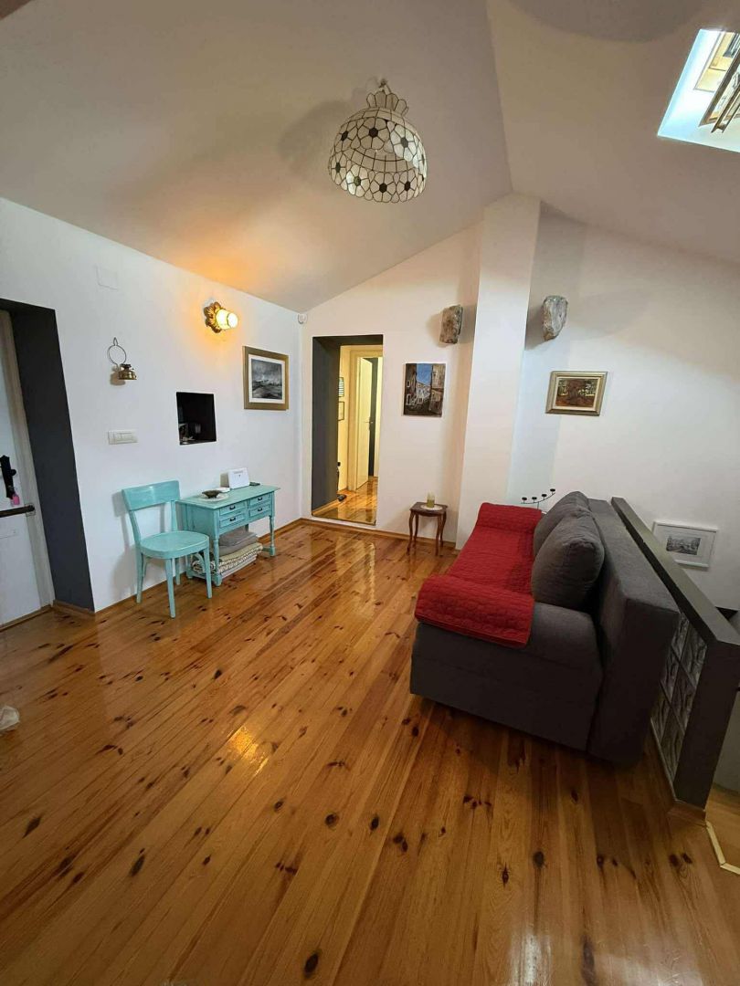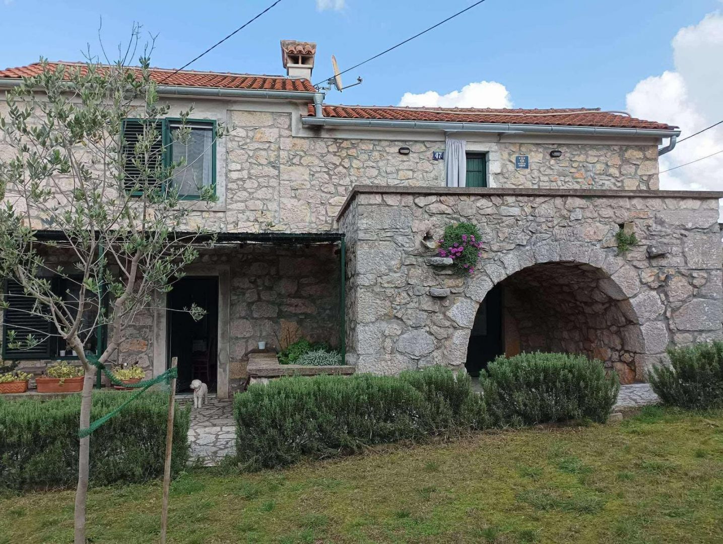 Ez a bájos kőház, amelyet 2021-ben teljesen felújítottak, a hiteles mediterrán stílus és a modern kényelem tökéletes keverékét testesíti meg. Egy 960 m²-es telken található, és 100 m² lakóteret kínál két szinten. A földszinten egy tágas nappali található fatüzelésű kályhával, konyha és étkező, míg az emeleten két hálószoba, fürdőszoba, egy nagy előszoba kanapéággyal és kijárattal a tengerre néző teraszra. A ház három külön bejárattal rendelkezik, ami ideális egy nagyobb család vagy turisták számára. A fűtést és hűtést légkondicionáló, kályhák és fali fűtőtestek biztosítják. A kültéri területen sós vizes medence (8×4 m), napozórész, három terasz (kettő a földszinten és egy az emeleten), egy autentikus WC a medence mellett, grillezőhely és egy parkosított udvar található több parkolóhellyel. A ház csendes, zöld környezetben található Malinska közelében, Krk szigetén. A helyszín teljes nyugalmat, magánéletet és pihentető tengerre néző kilátást kínál, ugyanakkor közel van a turisztikai és városi szolgáltatásokhoz. Ideális azok számára, akik egyensúlyt keresnek a természet és a megközelíthetőség között. Az ingatlan alkalmas egész éves lakhatásra, nyaralásra vagy egy sikeres turisztikai bérlés folytatására. A három bejárat, az elrendezés és a felszereltség rugalmasságot biztosít családi élet, többgenerációs szállás vagy turisták számára. A megfelelő dokumentáció és a hitelre történő vásárlás lehetősége tovább segíti a befektetést.