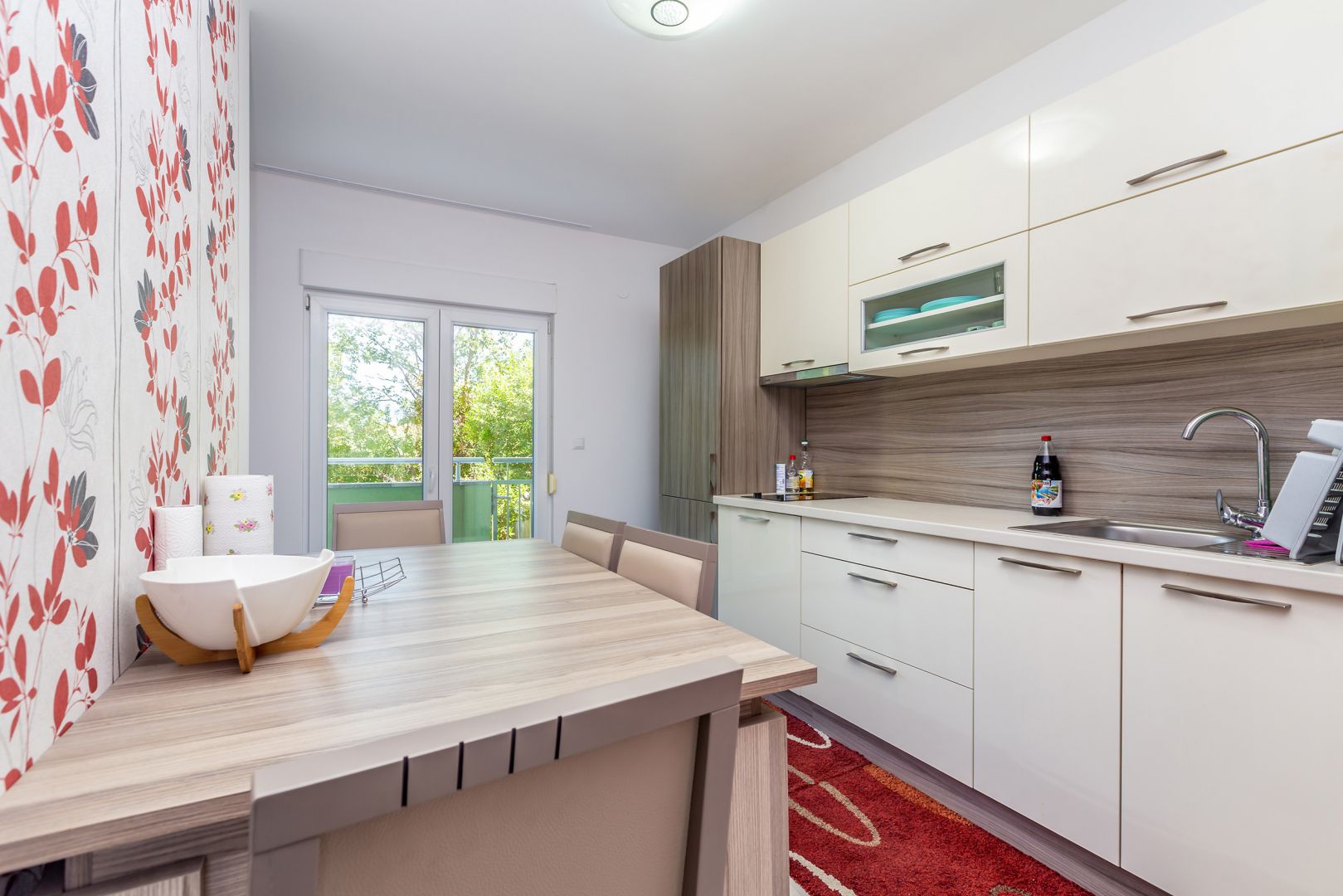 Krk-sziget, Klimno – Apartman a tenger közelében nagy kerttel Az apartman egy kis faluban található a tenger mellett. Az épület földszintjén található, körülbelül 50 m2-es. Tartalmaz egy fürdőszobát, egy hálószobát, egy konyhát, egy étkezőt és egy nappalit, amely egy teraszra nyílik, részleges kilátással a tengerre. A lakás 2020-ban lett felújítva, teljes bútorzattal eladó. A lakáshoz egy parkolóhely tartozik. Ennek az apartmannak a legnagyobb előnye, hogy közel van a tengerhez, amely mindössze száz méterre van. Krk szigetének keleti oldalán található Dobrinj község azonos nevű központtal. Dobrinj egy körülbelül 200 méter magas dombon található, és egyike azon középkori kastélyoknak, amelyek a múltban az írásbeliség központjai voltak. Dobrinjština évszázadokon át rendkívül mezőgazdasági vidék volt. Az állattenyésztés és az olajbogyó-termesztés, valamint az erdészeti erőforrások kiaknázása is képviseltette magát. A hely színpompás népviseletéről, folklór rendezvényeiről, sopela iskolájáról (Krk fúvós hangszere) és hagyományos helyi konyhájáról is ismert. A sziget központjában őshonos kőházak és a múltat idéző szűk kőutcák uralkodnak. Dobrinjétől nem messze található a Biserujka-barlang, mely szépségével és érdekes csapadékformáival gyönyörködtet. Ez az egyetlen barlang a szigeten, amelyből több mint 50 található, és a látogatók fogadására szolgál. A legenda szerint a barlang Biserujka (gyöngy) nevet kapta a benne talált kincsről, amely a helyi kalózoké volt.