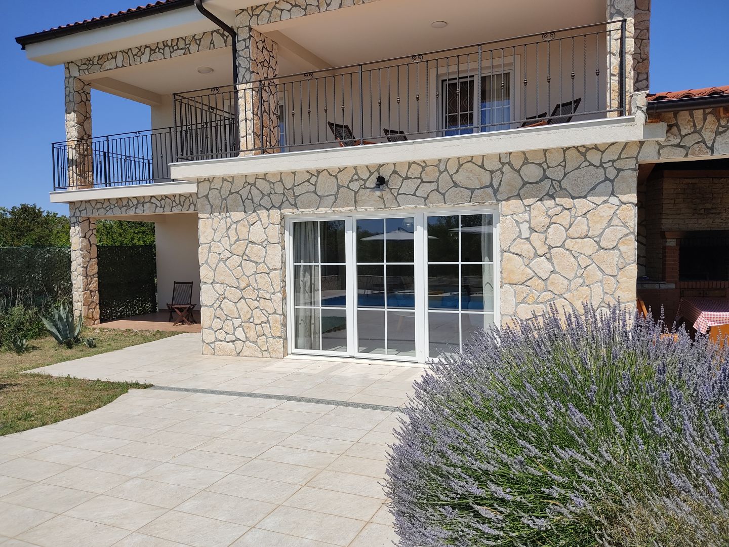 Ez a gyönyörű ház a tengertől kb 1600 m-re, csendes helyen található. Körülbelül 250 m2-es, három emeletre osztva. Az alagsorban lógásra, játékra van lehetőség, igény szerint más célra is használható. A földszinten található egy fürdőszoba, egy hálószoba saját fürdőszobával, egy konyha étkezővel és egy nappali, ahonnan egy gyönyörűen parkosított, mediterrán növényekkel tarkított kertbe jutunk, ahol egy 30 m2-es úszómedence található. napozóterasz, fedett terasz grillezővel és tároló helyiség mosókonyhával. Hangsúlyozni kell, hogy a napozóterület teraszáról a tengerre lehet látni. Az első emeleten két nagy hálószoba található saját fürdőszobával, ahonnan ki lehet jutni egy nagy erkélyre, ahonnan panorámás kilátás nyílik a tengerre. A házban napelemek vannak a víz melegítésére. Kiemelendő, hogy a ház telke mellett található még egy kb 550 m2-es építési telek, mely az épülettel és a ház telekkel együtt kerül értékesítésre. Krk szigetének keleti oldalán található Dobrinj község az azonos nevű központtal. Dobrinj egy körülbelül 200 méter magas dombon található, és egyike azon középkori kastélyoknak, amelyek a múltban az írásbeliség központjai voltak. Dobrinjština évszázadokon át rendkívül mezőgazdasági vidék volt. Az állattenyésztés és az olajbogyó-termesztés, valamint az erdővagyon kiaknázása is képviseltette magát. A hely színpompás népviseletéről, folklór rendezvényeiről, sopela iskolájáról (Krk fúvós hangszere) és hagyományos helyi konyhájáról is ismert. A sziget központjában őshonos kőházak és a múltat idéző szűk kőutcák uralkodnak. Dobrinjétől nem messze található a Biserujka-barlang, mely szépségével és érdekes csapadékformáival gyönyörködtet. Ez az egyetlen barlang a szigeten, amelyből több mint 50 található, és a látogatók fogadására szolgál. A legenda szerint a barlang Biserujka (gyöngy) nevet kapta a benne talált kincsről, amely a helyi kalózoké volt.