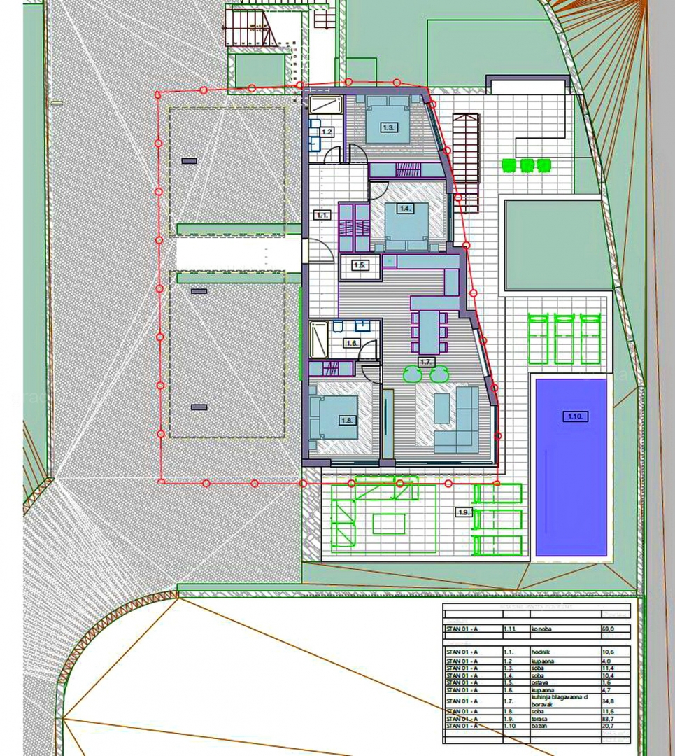 A Stan Grad Immobilien iroda észak-adriai ingatlanjainak széles választékából kiemelkedik egy nagyon fényűző apartman Krk sziget vonzó turisztikai régiójában. Ez az ingatlan kiváló helyen található, Krk városközpontjába integrálva, közel a tengerhez, a strandhoz és más turisztikai látványosságokhoz. Az ingatlan típusa szerint egyszintes komfortos lakás az épület földszintjén, 4 lakással. A lakás összterülete kb.