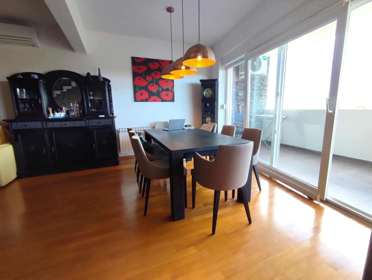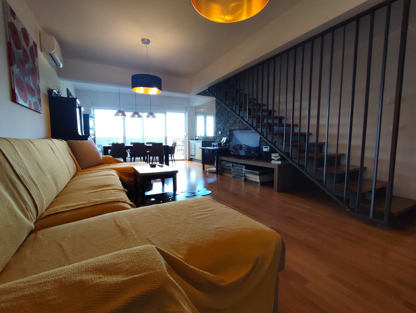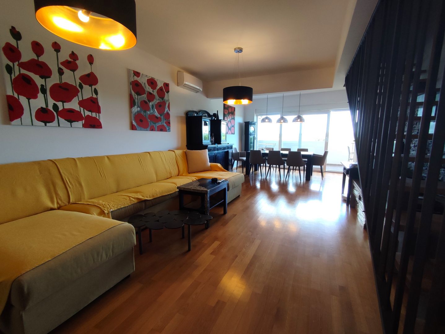 Ez a gyönyörű kétszintes apartman egy jó minőségű új épületben található, pár perc sétára a tengertől. A teljes lakóterület 177 m2. Az emeletre lépve egy tágas, egyterű nappalit találunk étkezővel, konyhával és egy tágas fedett teraszra jutunk, ahonnan csodálatos kilátás nyílik. A folyosón keresztül jutunk el 3 hálószobához, egy fürdőszoba WC-vel, valamint egy további WC zuhany-kád beépítési lehetőséggel. A belső lépcső a tetőtérbe vezet, ahol további 2 hálószoba, egy nagy fürdőszoba WC-vel, egy tároló helyiség és egy fantasztikus kilátást nyújtó szabadtéri terasz található. A lakás gáz központi fűtéssel és 2 db klímával felszerelt. A lakáshoz 2 saját parkolóhely is tartozik. Az épülethez tartozik egy közös udvar is kandallóval és társasozási lehetőséggel.