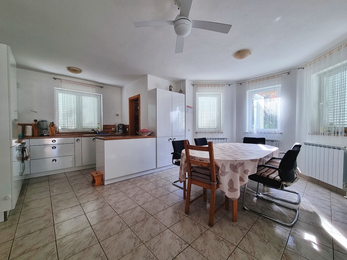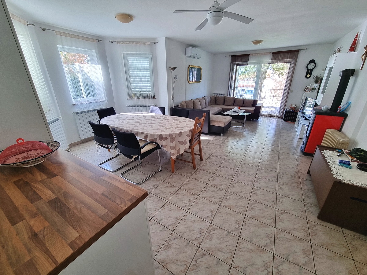 Az STAN GRAD Immobilien kínálatában egy kiváló minőségű ház található, amely ideális turistai tartózkodásra vagy állandó lakhatásra az Észak-Adriai régióban, a népszerű és keresett Kvarner-öbölbeli úti célnak számító Krk szigetén. Ez az önálló, többemeletes ház gyönyörű és nyugodt környezetben helyezkedik el, rövid távolságra a híres Malinska központjától, így tökéletes választás nyaralásra vagy befektetésre. A ház három szinten terül el, teljes alapterülete 243 m². A földszinten előszoba, tágas nappali, konyha étkezővel, két hálószoba és két fürdőszoba található.