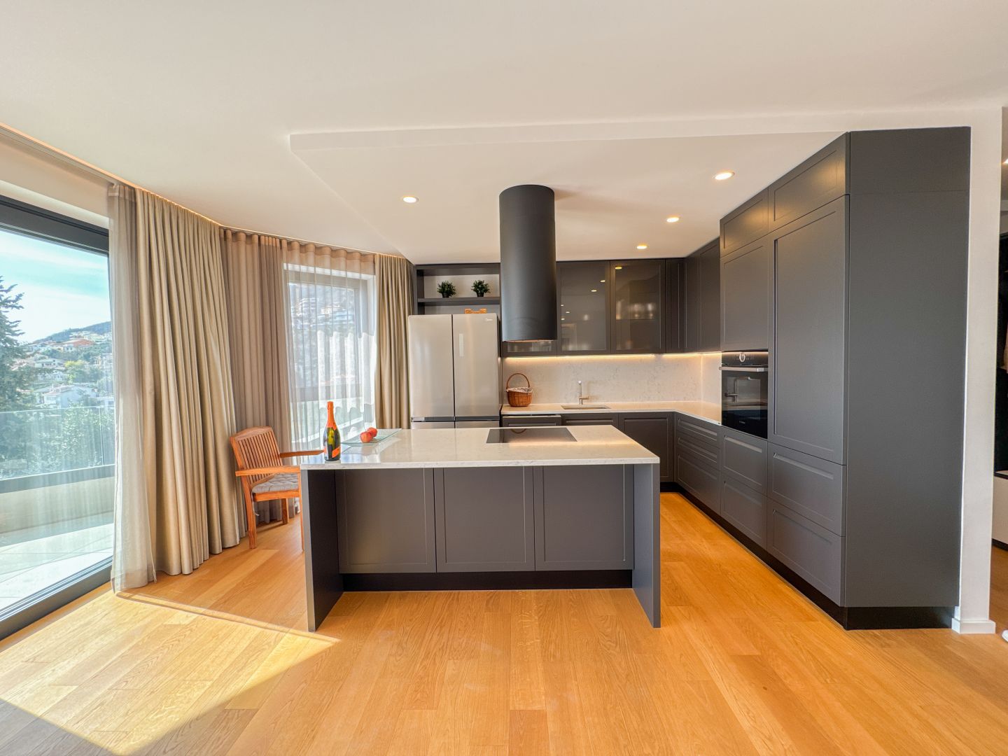 Ez az apartman csúcsminőségű luxust, lenyűgöző kilátást, valamint a magánélet és Abbázia összes kényelméhez való közelségének tökéletes kombinációját kínálja. Az ingatlanlátogatás egyeztetéséhez hívja bizalommal az ügynököt – német nyelvű egyeztetés lehetséges.