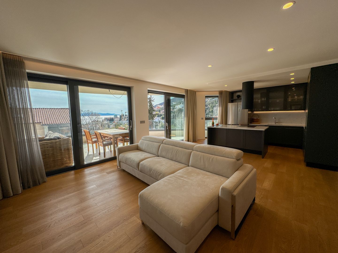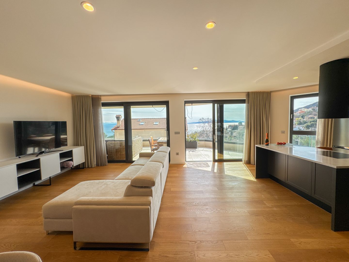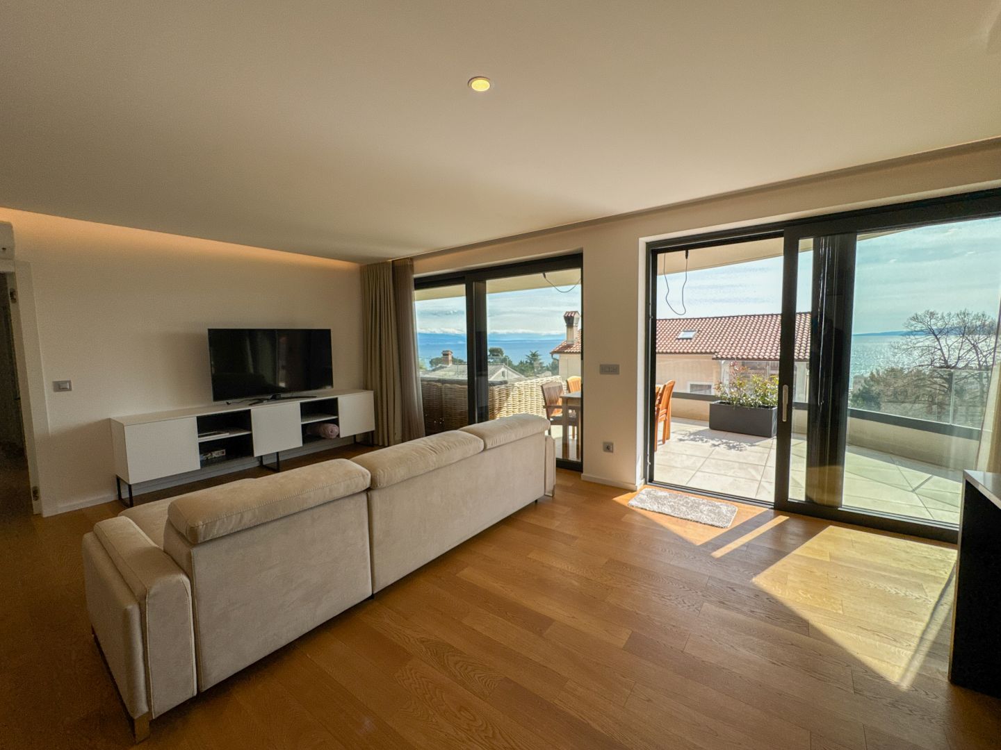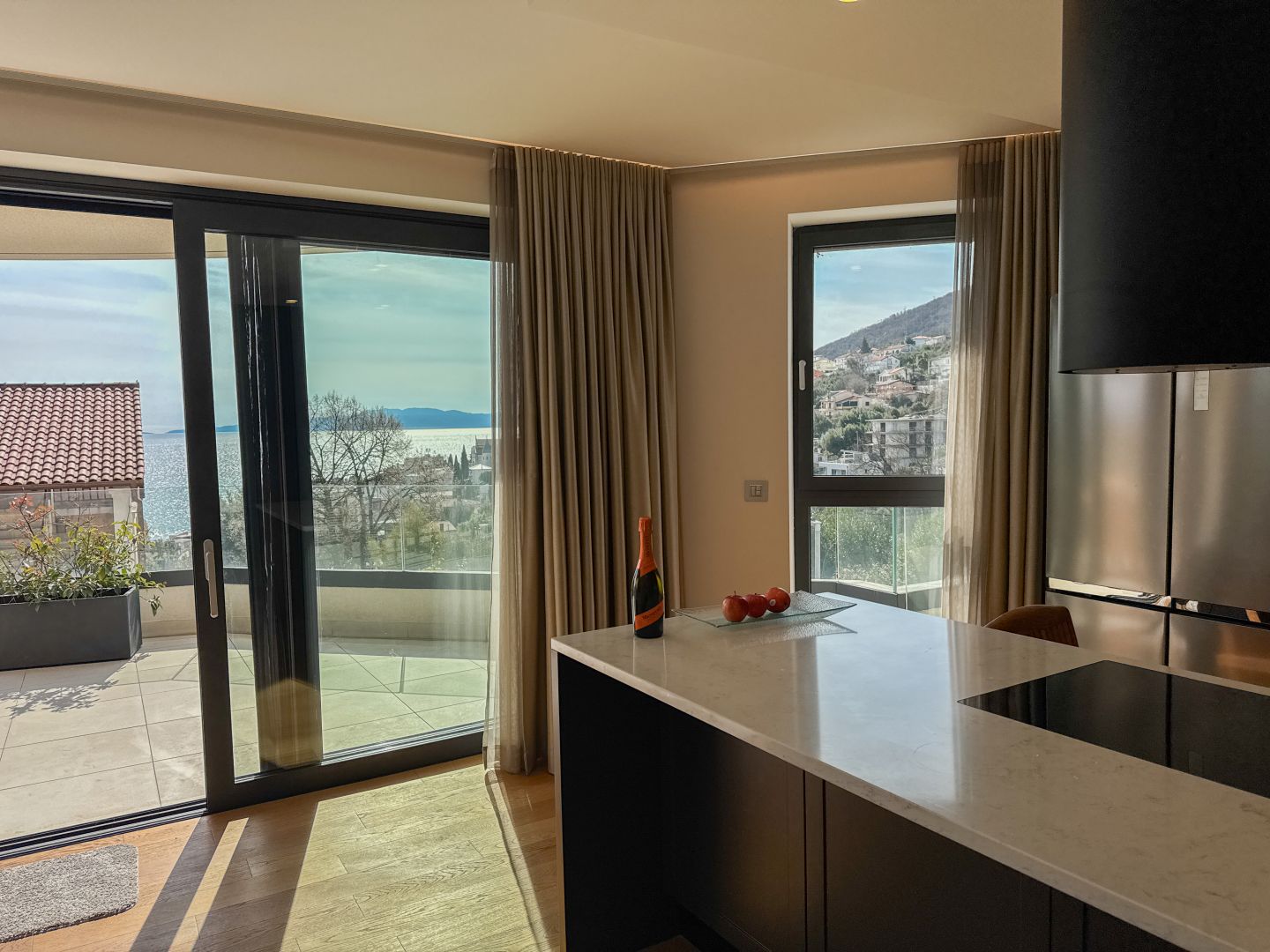 OPATIJA, KÖZPONT – modern apartman saját medencével, nagy terasszal és tengerre néző kilátással Abbázia központjában