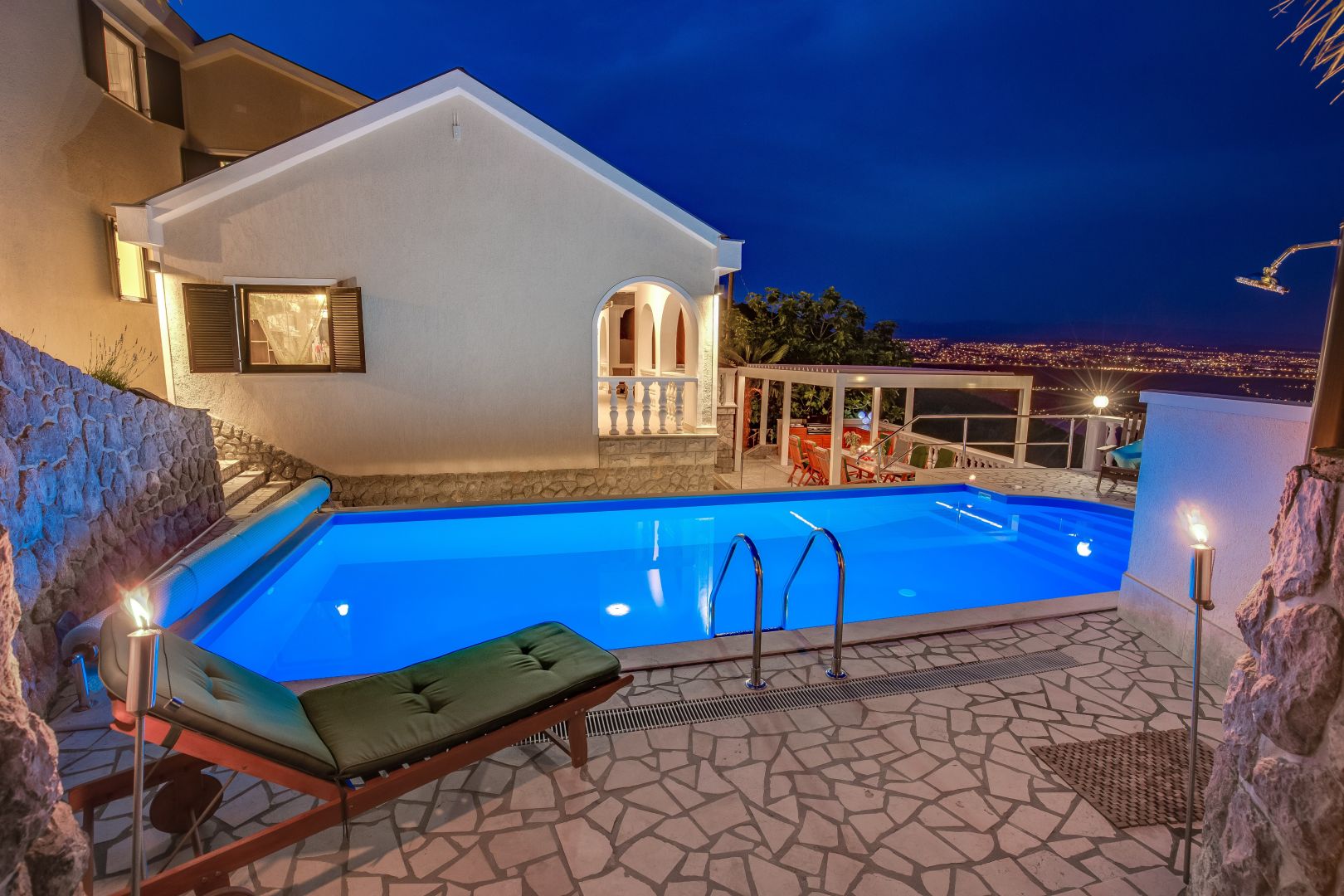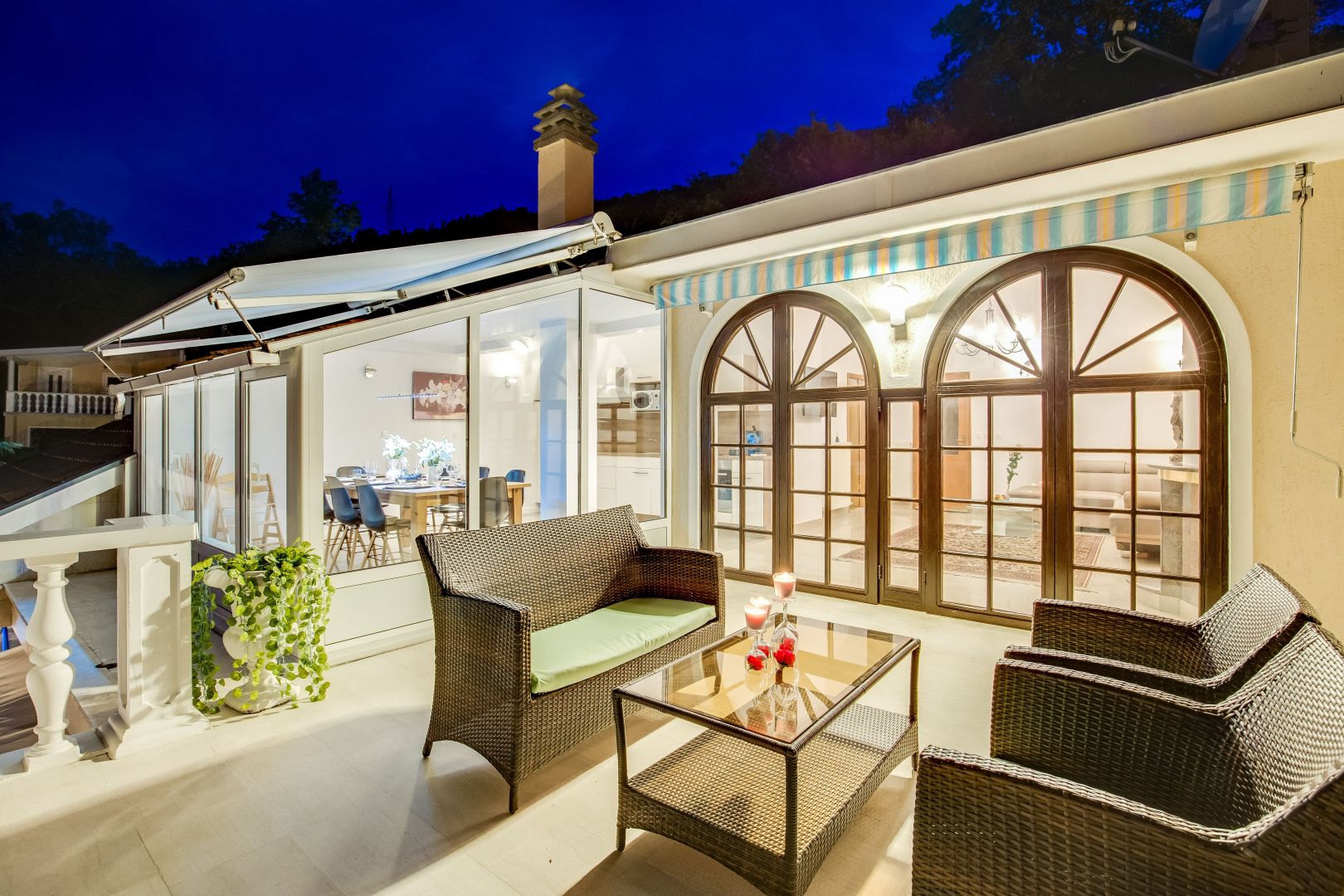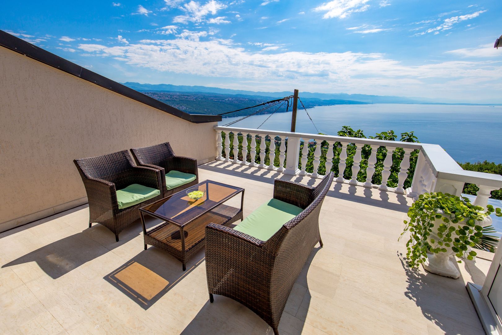 Ez a gyönyörű villa csendes helyen található, gyönyörű kilátással a Kvarner-öbölre. Abbázia közelében, parkosított és bekerített telken található. A teraszos villa teljes lakóterülete 430 m2, és egy 2000 m2-es teraszos telken található. 3 különálló lakóegységből áll, melyeket részben külső lépcső köt össze. A legnagyobb egység három emeleten terül el, amelyeket belső lépcsők kötnek össze. A számos terasz lehetővé teszi, hogy mindenki megtalálja a helyét. A tágas, 2000 m2-es kertben tengerre néző medence, különféle létesítmények, valamint parkolóhelyek találhatók. Megfelelő dokumentáció és tulajdonjog. Ideális ingatlan családi élethez vagy befektetésnek egy már bejáratott turisztikai bérbeadásba.