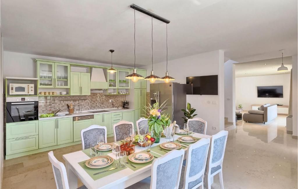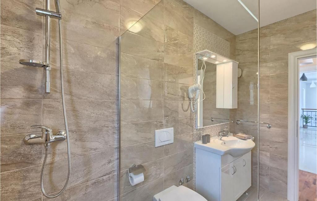 OPATIJA, MOŠĆENICE - Félreeső villa, 240 m2 tengerre néző kilátással Eladásra kínálunk egy gyönyörű, félreeső villát közel 1000 m2-es kerttel, végtelenített medencével, nyári konyhával, minigolffal és játszótérrel zöldövezetben, kilátással a Kvarner-öbölre. Dux ismét remek lehetőséget kínál arra, hogy félreeső ház tulajdonosává váljon. Ezt a 4 éve épült villát úgy alakították ki, hogy az üdülés kizárólag jó pillanatokkal legyen tele, és az akkumulátorok újratöltésére szolgáljon. Ez egy 240 m2 lakóterületű épület az első emeleten.