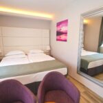 Eladó egy gyönyörű, jól bevált vállalkozással rendelkező szálloda a központ közvetlen közelében, egy csendes utcában, saját parkolóval és egy további házzal a tulajdonosok vagy a személyzet számára. Mindössze 100 méterre található a tengertől és az első strandtól, és 300 méterre az óváros központjától. 18 modern berendezésű és elegáns kétágyas szobával rendelkezik, 3 emeleten (1., 2. és 3. emelet). A 4. emeleten található még egy kétágyas szoba, egy masszázsszoba, valamint technikai és tárolóhelyiségek. Minden szoba légkondicionált, széffel, minibárral és síkképernyős műholdas TV-vel felszerelt. A szálloda vendégei liftet és egy nagy parkolót használhatnak. Az étterem és a lobby bár (mini kávézó) az épület földszintjén található, amely előtt fedett és üvegezett terasz található. Minden emelet körülbelül 200 m2 alapterületű, így a szálloda összesen 1000 m2-es. A 19 kategorizált szoba 3 kategóriába sorolható: Deluxe, Deluxe erkélyes és superior. Az egyes szobák területe 22 és 36 m2 között van. Hat szoba franciaerkéllyel, a többi szoba klasszikus erkéllyel rendelkezik, kilátással a tengerre vagy a közeli dombra. A fürdőszobákban minden szoba elektromos padlófűtéssel rendelkezik. Az „intelligens szoba” rendszer a recepcióról vezérli az egész létesítményt a hőmérséklet, a foglaltság, valamint a vendégek és a személyzet áthaladása alapján. Bármikor tudni lehet, hogy nyitva van-e valamelyik ablak vagy bejárati ajtó. Azt is pontosan tudni lehet, hogy hol tartózkodik az egyes takarítónő, mikor és mennyi ideig tartózkodott az egyes szobákban. A rendszer automatikusan kikapcsolja a légkondicionálót, ha az ajtó vagy az ablak nyitva van. Sok más információval is rendelkezünk magáról a szállodáról és annak működéséről, amelyeket kérésre beszerezhetünk. HÁZ A SZÁLLODA MELLETT A ház alapterülete 125 m2, ami két szinten összesen körülbelül 220 m2-t tesz ki, és a szállodával együtt eladó. 5 db kb. 20 m2-es, magánszállásként kiadó ingatlan, amelyhez egy kb. 65 m2-es magánlakás tartozik, ahol a tulajdonosok laknak. A szálloda építésekor a régi házba bevezették a szálloda légkondicionálójának csöveit, így a jövőben az objektumok egyetlen egységgé alakíthatók.