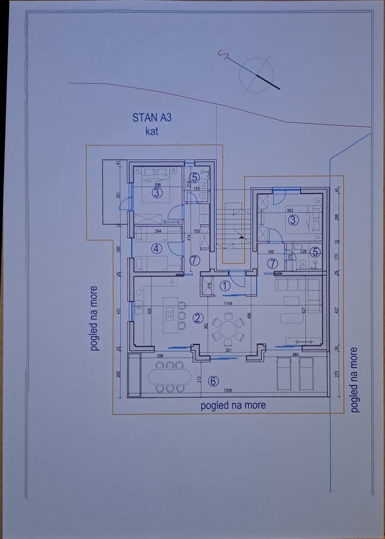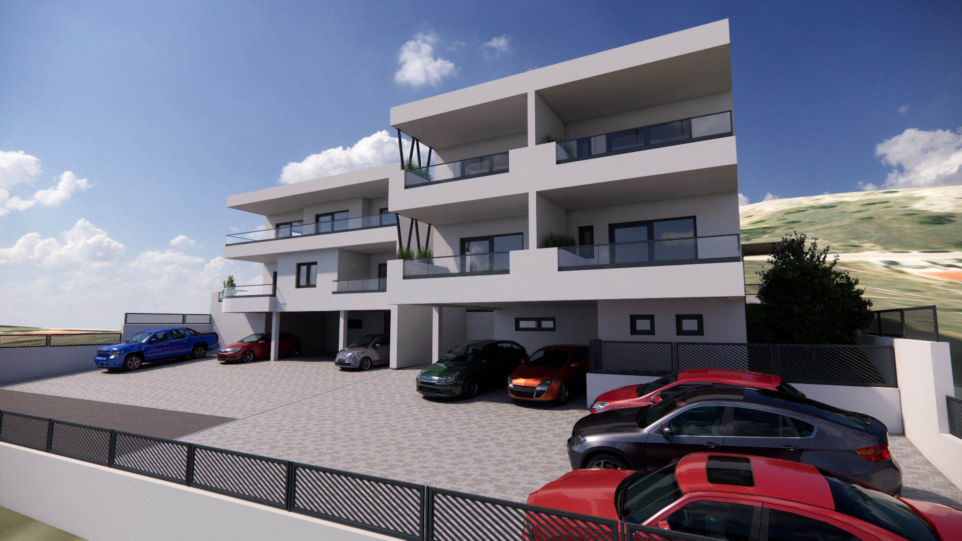 PAG, PAG VÁROS – Lakás lélegzetelállító kilátással! Az A3-as számú APARTMAN egy épülőfélben lévő, 3 apartmanos épületben található, a 2. emeleten, amely a teljes legfelső szintet elfoglalja. Az épület földszintjén található egy előszoba nagy tárolóval és 2 parkolóhellyel az udvarban.