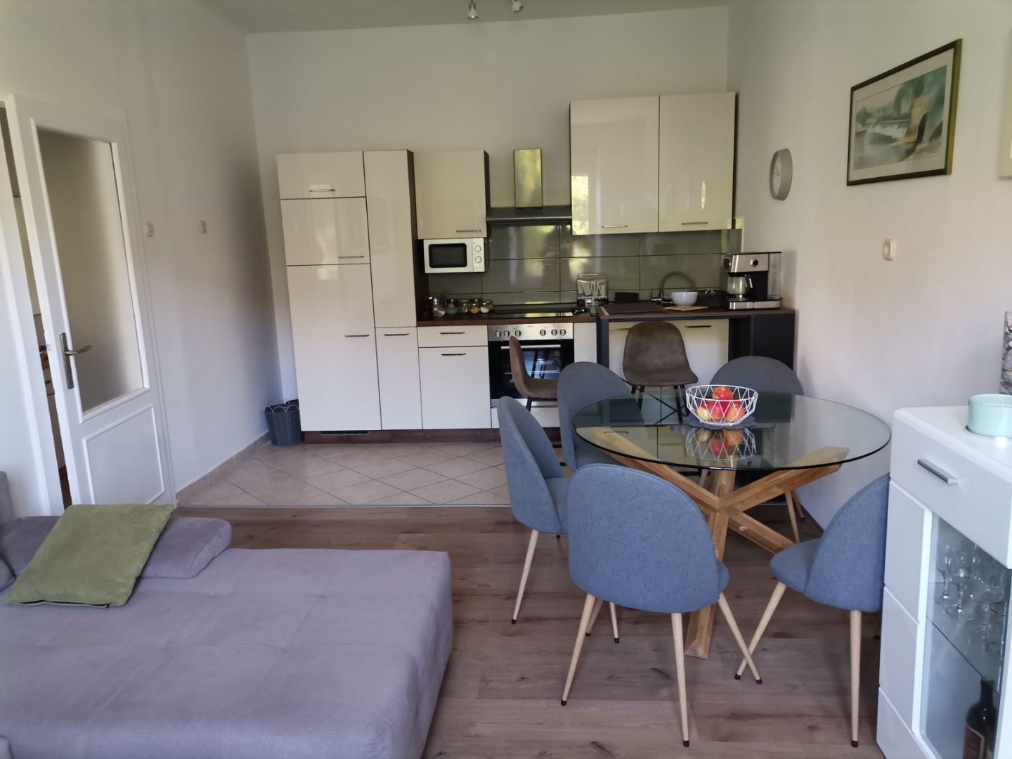 RIJEKA, BELVEDER - 2 hálószoba + nappali, 66 m2, kiváló elhelyezkedésű tengerre néző kilátással! Eladó lakás Belvederében, gyönyörű kilátással a tengerre. A 66 m2 alapterületű apartman konyhából, nappaliból és étkezőből áll egy közös helyiségben, valamint két hálószoba és egy fürdőszoba. Az egyik hálószobából nyílik az erkély.