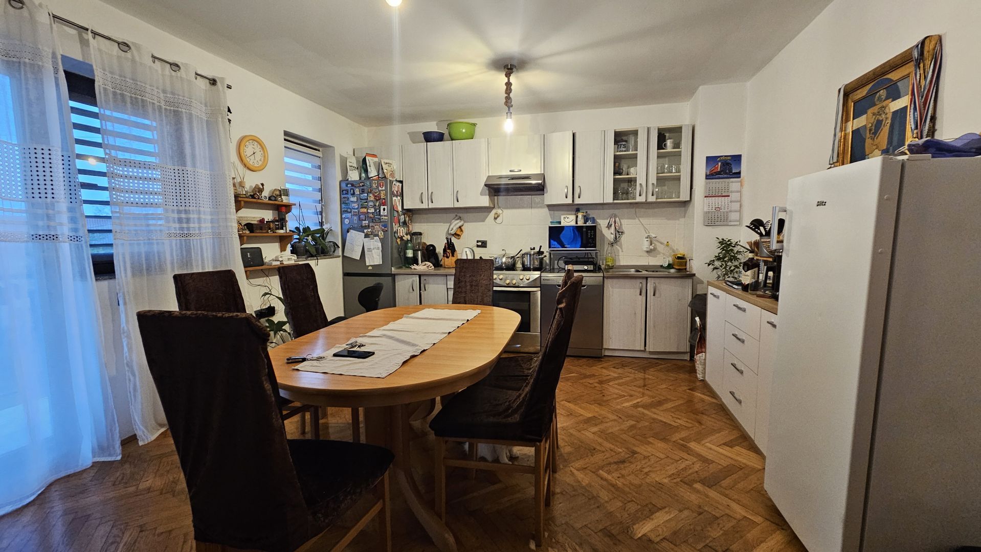 Eladó egy nagyon érdekes lakás egy házban, nagyon csendes helyen. Ház összesen három apartmannal. Az apartman a ház földszintjén található. A lakás felett és alatt van még két másik apartman. Található benne előszoba, konyha étkezővel és nappalival, két hálószoba, fürdőszoba, közel 100 m2 összterület. A nappali egy erkélyre nyílik, amely az egész emeleten keresztül húzódik. Nyugati fekvésű, ami sok napfényt ad neki. A lakáshoz egy parkolóhely tartozik. Nagyon érdekes ingatlan, érdemes megfontolni.